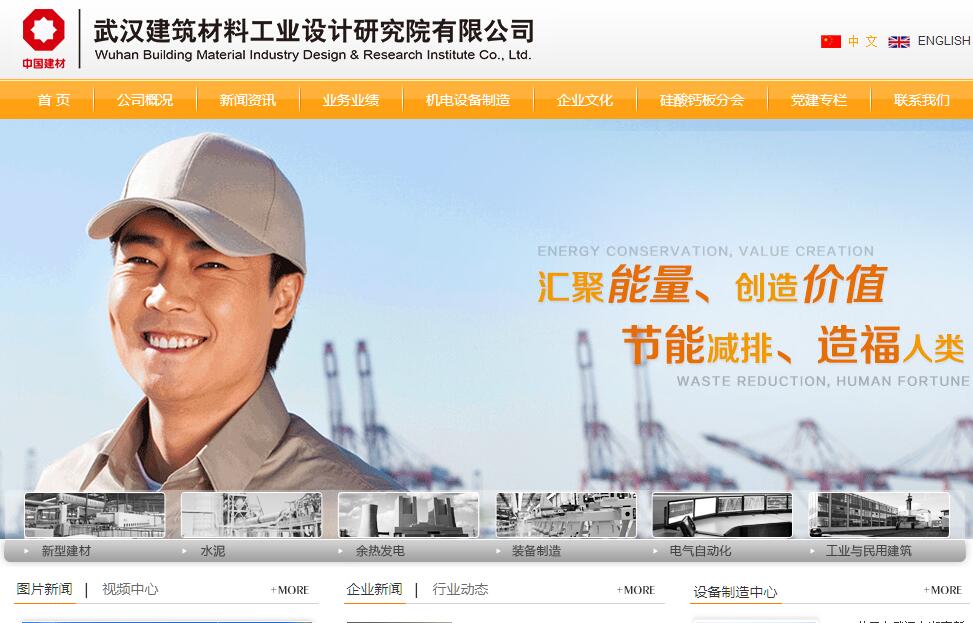 武汉建筑材料工业设计研究院有限公司(武汉建材院)成立于1965年,隶属于中国建材集团有限公司,集建材行业工程设计、工程总承包、技术咨询、设备成套和加工制造于一体,拥有技术和设备进出口权。设计、研究、管理手段完善,是建筑材料工业领域内一家实力雄厚、信誉良好的工程技术公司。公司具有新型建材工程设计、水泥工程设计、工程总承包、工程技术咨询甲级资质,并通过质量、环境、安全管理体系认证(ISO9001/ISO14001/OHSAS18001)。公司汇集了一支技术熟练、经验丰富的设计研究队伍,现有职工380余人,其中教授级高级工程师14人,高级工程师35人,工程师96人。公司在新型建筑材料行业具有丰富的经验和独特的技术优势,处于行业领先水平。公司集建材行业工程设计、工程总承包、技术咨询、成套装备研发和加工制造于一体,具有新型建材工程设计、工程总承包、工程技术咨询甲级资质,新能源发电设计乙级资质,并通过质量、环境、安全管理体系认证。公司具有较强装备研发创新能力,拥有自主知识产权专利若干项,并获得了国家高新技术企业认定,其下属全资子公司 中材节能(武汉)有限公司拥有15000M²设备研发加工基地,提供设备加工和成套服务,同时承接余热发电辅机和新材设备的新产品联合研发和试制工作。建院50余年来,先后承接完成新型建材及水泥制品领域工程项目四百余项、专用设备设计制造1000多台(套)。取得了良好的经济效益及社会效益,获得了全国科技大会奖,省、部级工程设计和技术进步奖共55项。在与全国各地近百家发电厂、热电厂、煤业集团、钢铁集团、纸业集团、矿业集团和民营企业进行了合作的同时,也积极走向国际市场,设备出口到了沙特阿拉伯、哈萨克斯坦、印度、印尼、越南、土耳其、缅甸等国,赢得了国内外业主的好评和广泛赞誉。公司本着“诚信、务实、求精、拓新”的经营理念和执著进取的企业精神,在建筑材料工程建设领域提供全过程、全方位的优质服务,并将秉承传统,力创佳绩,回报用户,回报社会。