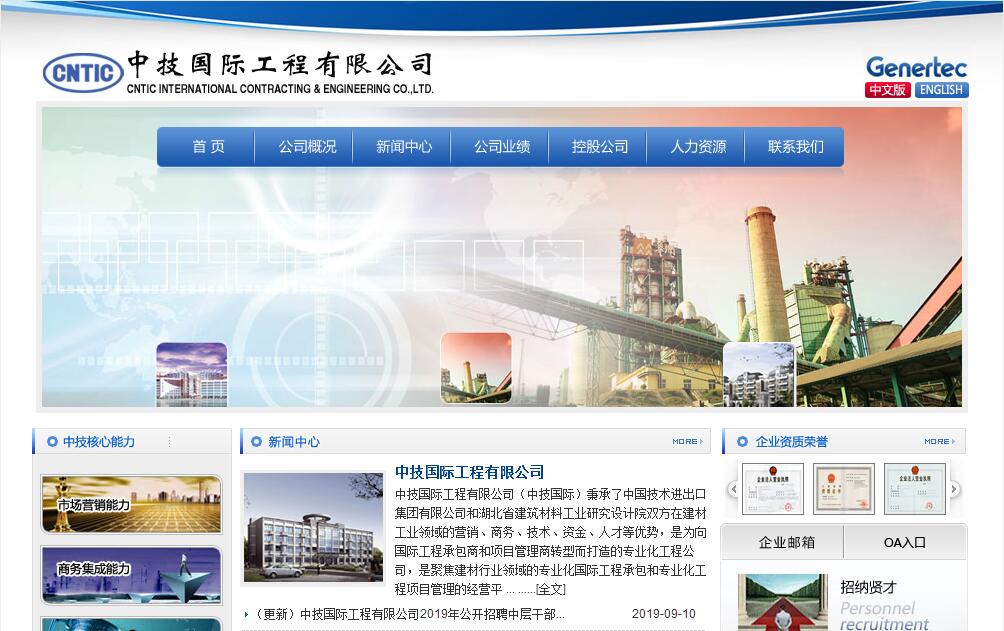 中技国际工程有限公司(中技国际)秉承了中国技术进出口集团有限公司和湖北省建筑材料工业研究设计院双方在建材工业领域的营销、商务、技术、资金、人才等优势,是为向国际工程承包商和项目管理商转型而打造的专业化工程公司,是聚焦建材行业领域的专业化国际工程承包和专业化工程项目管理的经营平台,在国内外拥有丰富的经营业绩,具备齐全的经营资质,汇集优秀的人才队伍。中技国际拥有六个甲级经营资质,分别为建材行业工程设计甲级、建材行业工程咨询甲级、房屋建筑工程监理甲级、市政公用工程监理甲级、冶炼工程监理甲级、安全评价机构甲级。另外还有建材规划咨询乙级资质、建筑行业(建筑工程)工程设计乙级资质、建材行业工程设计乙级资质、计量认证资质等。中技国际资质齐全、专业完备、功能配套,能够为建材行业科研开发、工业生产、工程设计、工程咨询、工程承包、工程监理、项目管理、安全评价、职业卫生评价、清洁生产审核、产品测试、建筑节能检测、建工检测、绿色建材、计算机软硬件开发提供全方位的技术服务。在工程设计及技术研发方面,中技国际累计完成省部级科研项目28项,开发新产品17个,获得12项科技进步奖、2项国家发明专利和2项国家重点新产品证书;完成水泥、新型建材、民用建筑等工程设计310余项,湖北省工程设计、工程咨询类成果奖8项。在工程监理与项目管理方面,中技国际在监理与项目管理上的业绩及实力在全国同行业中居领先地位。完成建材工业、民用建筑、市政工程等工程监理、项目管理的项目100多个,市场遍及海外的越南、缅甸、阿联酋、阿曼、乍得、埃塞、刚果等国及全国大多数省、自治区、直辖市,在水泥行业内享有很高的知名度。获鲁班奖4项、湖北省楚天杯奖27项、武汉市黄鹤奖22项。在建材产品质量监督检验方面,中技国际具有国家质量技术监督局“符合《产品质量检验机构计量认证/审查认可(验收)评审准则》要求和授权条件”的授权证书,是湖北省内装备配套最齐全、检测产品及指标覆盖最广的专业建材质监机构,可承担十三大类255种建材产品的委托检验、仲裁检验、现场监测等业务,是湖北省建材行业内最权威的检测机构和建材产品质量仲裁中心。在安全评价方面,中技国际可为各类工程提供安全预评价、安全验收评价技术咨询及各种单项安全现状评价咨询服务。现已完成200多项国家重点工程以及众多水泥企业工程的安全评价。在建筑节能检测方面,中技国际能够检测建筑外墙外保温系统性能、建筑门窗的气密性、水密性、抗风压、保温性、建筑围护结构的传热系数、建筑节能材料的物理力学性能以及建筑节能能效测评。在“三体系”建设方面,公司通过了国家GB/T19001-2008质量管理体系、GB/T24001-2004环境管理标准和GB/T28001-2011职业健康安全管理体系标准的认证。在国际工程方面,中技国际具有很强的工程承包能力,参与了我国最早的海外水泥工程项目,在上世纪90年代初成功出口了中国第一条水泥生产线设备,已在中东、东南亚和非洲成功承揽并建成大批水泥工程项目,建立了良好的品牌声誉。目前,公司围绕“一带一路”国家战略,正积极在伊朗、越南、缅甸、老挝、巴基斯坦、孟加拉、俄罗斯、乌兹别克、赞比亚、尼日尔等国家开发水泥项目,发展势头良好。在中技国际的一大批专业技术人才中,拥有享受政府特殊津贴专家4人,教授级高级工程师12人,高级工程师 26 人,工程师20人,各类注册资质人员94人,涵盖建筑、结构、化工、监理、建造、造价、咨询、安全评价、机械、质量等十几个专业类别,高级职称技术人员占全员总数22%以上。中技国际还拥有一支精通国际贸易、精通外语、懂技术、懂管理的复合型人才,能够为广大业主提供全过程、深层次、高质量的服务。中技国际经营范围涵盖:工程相关的材料、技术、产品和装备的研究、开发、咨询;工业与民用工程设计、工程总承包、装备采购、建筑安装、质量检验、工程项目管理、工程监理、能源中技国际将充分发挥其商誉品牌、市场营销、商务集成、项目投融资、工程设计、设备集成、工程监理、项目管理等方面的优势,紧密依托国际、国内两个市场,大力发展建材设计研发,重点发展建材工程承包,延伸发展建材及相关行业的产业链,打造一个集“设计研发、工程承包、产业延伸”为一体的具有国际竞争力的工程公司。