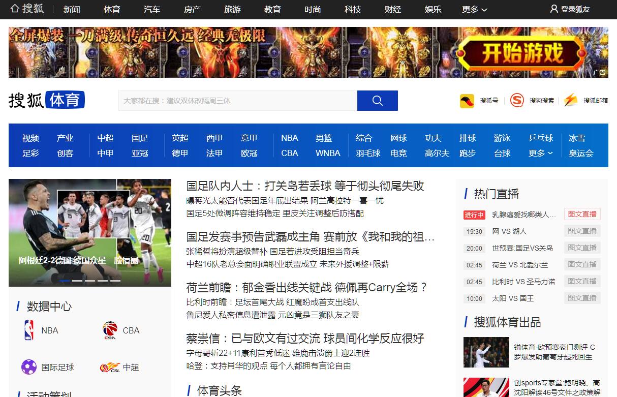 | 网站简介: 搜狐体育是中国最领先的体育媒体 ,是最受体育迷欢迎的网络资讯及互动平台。频道集赛事新闻报道、赛事视频转播、体育资讯服务、自媒体内容互动于一体,着力打造国内最具影响力的体育媒体。 |