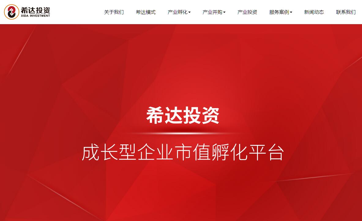 | 网站简介: 希达投资集团是一家专注于成长型企业市值孵化的平台型企业, 公司业务涵盖资本教育 、产业孵化、股权投资、私募融资、深度咨询、顶层设计等专业金融服务,致力于为中国企业 家、投资人、创业者提供一站式解决方案。希达“股权资产开发模式”以投行的视角,围绕企业价值核心进行系统开发,为企业建立自 主价值循环模型。集团以资本教育为入口,形成教育、孵化、投资、金融四位一体的资本生 态平台,通过“咨询+资本+圈层”的综合服务体系帮助企业、投资人、创业者实现客户价值 最大化。集团总部位于成都,在政治中心北京、金融中心上海、经济中心深圳均设有运营中心, 旗下控股30多家直营公司,200多家合作机构,服务网络覆盖全国。希达团队及所有合伙人秉 承“融”的境界,“易”的智慧,“爱”的发心,为实现资本强企、金融强国而努力奋斗!希达投资,专为成长型企业价值成长保驾护航! |