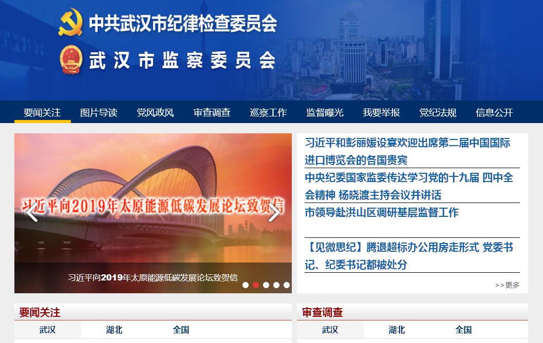 武汉纪检监察网由中共武汉市纪律检查委员会、武汉市监察委员会主办。