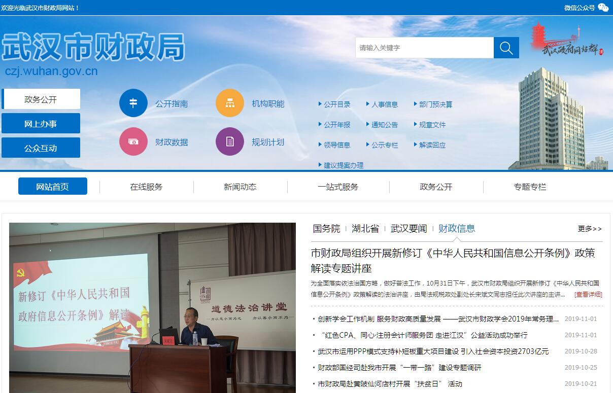 武汉市财政局主要有以下职能和职责:1.拟订全市财税发展战略、规划和改革方案并组织实施,分析预测宏观经济形势,参与制定各项经济政策,提出运用财税政策实施宏观调控和综合平衡社会财力的建议,拟订和执行市与区的分配政策,完善鼓励公益事业发展的财政政策。2.参与起草有关财政、财务、会计管理方面的地方性法规草案、政府规章草案,制定和执行全市财政、财务、会计管理的规章制度,并指导、监督执行。3.负责政府非税收入管理,负责政府性基金管理,按规定管理行政事业性收费。管理财政票据。4.承担市级各项财政收支管理的责任。负责编制年度市级预决算草案并组织执行。负责审核批复市直部门(单位)的年度预决算。会同税务部门贯彻执行税收政策。5.组织制定国库管理制度、国库集中收付管理制度,指导和监督市级国库业务,按规定开展国库现金管理工作。负责制定全市政府采购监管办法,并负责组织实施和监督管理。6.贯彻执行行政事业单位国有资产管理制度,并制定相应的财务管理办法。7.参与制定国有资本经营预算的制度和办法,监缴市本级企业国有资本收益。8.负责管理和监督市级财政的经济发展支出、市级政府性投资项目的财政拨款,参与拟订市级建设投资的有关政策等。9.参与全市社会保障规章、政策和改革方案的研究制定等。10.拟订和执行地方政府债务管理的制度和政策,统一管理地方政府债务。11.负责管理全市的会计工作,监督和规范会计行为;执行国家会计法律、法规、会计准则和会计制度。按规定指导和监督注册会计师和会计师事务所的业务,指导和管理社会审计。12.监督检查财税法律、法规、政策的执行情况,反映财政收支管理中的重大问题,提出加强财政管理的政策建议。13.完成上级交办的其他工作任务。