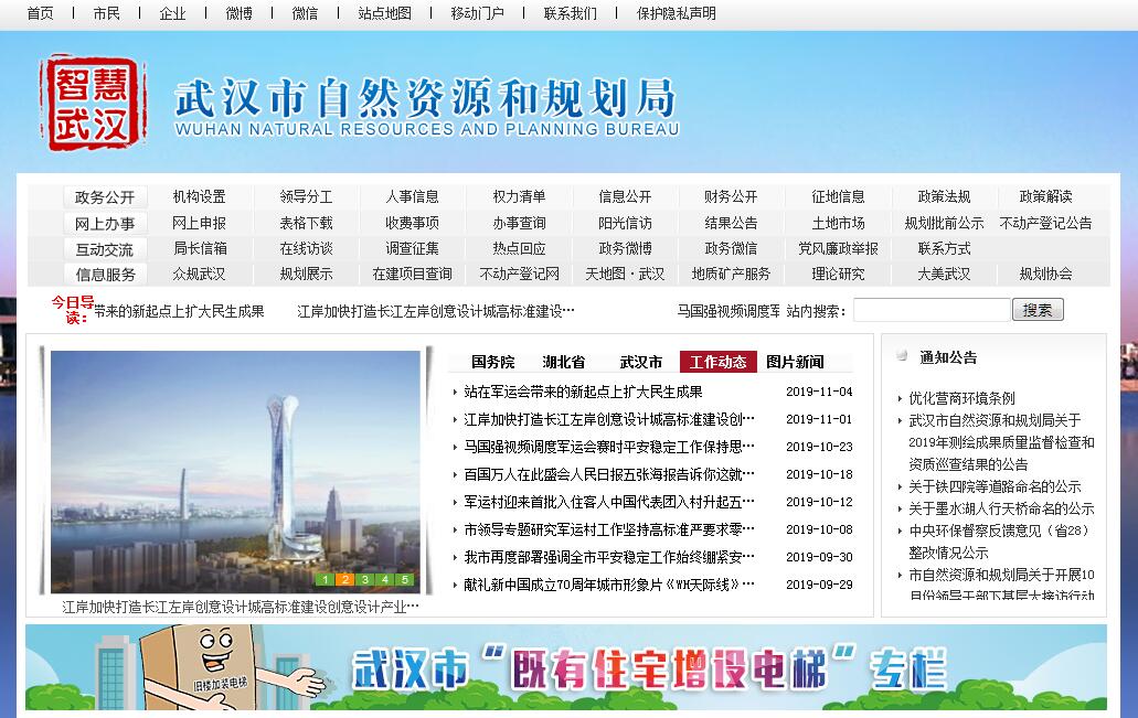 武汉市自然资源和规划局主要职责:(一)履行全民所有土地、矿产、森林、湿地、水等自然资源资产所有者职责和所有国土空间用途管制职责。贯彻执行国家和省、市关于自然资源、国土空间规划、房屋征收、测绘地理信息方面的法律、法规、规章。起草自然资源、国土空间规划、房屋征收、测绘地理信息等地方性法规、规章草案,经批准后依法组织实施并监督检查执行情况。(二)负责自然资源调查监测评价。贯彻执行自然资源调查监测评价制度、指标体系和统计标准。实施自然资源基础调查、专项调查和监测。负责自然资源调查监测评价成果的监督管理和信息发布。指导各区自然资源调查监测评价工作。(三)负责自然资源统一确权登记工作。组织制定并贯彻执行各类自然资源和不动产统一确权登记、权籍调查、不动产测绘、争议调处、成果应用的制度、标准、规范。建立健全全市自然资源和不动产登记信息管理基础平台。负责自然资源和不动产登记资料收集、整理、共享、汇交管理等。指导监督各区自然资源和不动产确权登记工作。(四)负责自然资源资产有偿使用工作。贯彻执行全民所有自然资源资产统计制度,负责落实全民所有自然资源资产报告制度的有关工作。负责全民所有自然资源资产核算。编制全民所有自然资源资产负债表并组织实施相关考核。组织拟订并指导实施全民所有自然资源资产划拨、出让、租赁、作价出资和土地储备政策措施,合理配置全民所有自然资源资产。负责自然资源资产价值评估管理,依法收缴相关资产收益。(五)负责自然资源的合理开发利用。组织拟订自然资源发展规划,制定自然资源开发利用标准并组织实施。建立政府公示自然资源价格体系,组织开展自然资源分等定级价格评估,开展自然资源利用评价考核,指导节约集约利用。负责自然资源市场监管。组织研究自然资源管理涉及宏观管理和城乡统筹的政策措施。(六)负贵建立健全空间规划体系。推进主体功能区战略和制度。组织编制并监督实施国土空间总体规划、综合交通及地下空间等专项规划、详细规划,推动实施“多规合一”。组织做好村庄规划编制和实施管理工作。组织开展国土空间开发适宜性评价,建立国土空间规划实施监测、评估和预警体系。组织划定生态保护红线、永久基本农田、城镇开发边界等自然资源保护控制线,构建节约资源、保护环境的生产、生活、生态空间布局。提出统筹自然资源保护和利用、促进城乡建设发展的政策建议,参与编制国民经济和社会发展规划、区域规划及其他涉及空间布局的专项规划。负责城乡规划行业管理和规划编制单位资质管理。(七)负责城市设计和历史文化名城规划统筹工作。研究拟订国土空间环境协调、卫生和安全防护、城市风貌管控政策措施,并监督实施。负责城市特色景观风貌塑造和公共空间环境品质提升等城市设计管理工作,组织和指导城市设计及历史文化街区、名镇、名村规划编制工作。负责建设工程规划管理。(八)负责国土空间用途管制工作。建立健全国土空间用途管制制度并监督实施。拟订并实施土地等自然资源年度利用计划。负责国土空间用途转用工作。负责土地征收征用管理。负责建设用地规划管理。负责用地预审和临时用地管理工作。(九)负责统筹国土空间生态修复。贯彻执行生态保护补偿制度,组织编制国土空间生态修复规划并实施有关生态修复重大工程。负责国土空间综合整治、土地整理复垦、矿山地质环境恢复治理工作。制定合埋利用社会资金进行生态修复的政策措施,提出重大备选项目。(十)负责组织实施最严格的耕地保护制度。贯彻落实耕地保护制度,负责耕地数量、质量、生态保护。牵头拟订并实施耕地保护措施,组织实施耕地保护责任目标考核和永久基本农田特殊保护。落实耕地占补平衡制度,监督占用耕地补偿执行情况。负责建设用地增减挂钩管理。(十一)负责国有土地上房屋征收管理。指导、管理全市国有土地上房屋征收工作,组织协调解决全市国有土地上房屋征收工作中的重大问题。组织编制全市房屋征收年度实施计划,并组织报批。承担市人民政府作出房屋征收决定的征收与补偿工作。(十二)负责地质矿产资源管理。负责管理全市地质工作和地质勘查行业。负责地质遗迹和古生物化石的监督管理。负责矿产资源储量管理。负责矿业权管理。监督指导矿产资源合理利用和保护。按照防灾减灾规划相关要求,组织编制地质灾害防治规划和防护标准并指导实施。组织指导协调和监督地质灾害调查评价及隐患的普查、详查、排查。指导开展群测群防、专业监测和预报预警等工作。指导开展地质灾害工程治理工作。(十三)负责测绘地理信息管理。负责基础测绘和测绘行业及市场管理。负责测绘资质资格与信用管理,监督管理国家地理信息安全和市场秩序。负责地理信息公共服务管理。负责基础测绘规划计划编制和组织实施,指导监督各区基础测绘计划落实工作。负责基础测绘成果的提供和使用审批,负责地图的编制审批。负责测量标志保护。负责组织实施地理国情监浏工作。(十四)负责科技发展和对外合作交流。制定并实施自然资源和规划领域科技创新发展和人才培养规划和计划。组织落实自然资源和规划领域有关技术标准、
