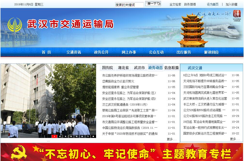 武汉市交通运输局是市人民政府工作部门,其主要职责是:(一)组织拟订全市综合交通运输体系规划、中长期规划,公路、水路、物流等专项规划。承担涉及全市综合交通运输体系的规划协调工作。统筹研究和组织实施交通运输发展战略、产业政策,组织起草交通运输有关地方性法规和市政府规章草案。负责交通运输行业统计和信息发布工作。负责全市交通运输行业有关体制改革工作。(二)负责统筹城乡交通运输协调发展。协调铁路、民航、邮政及其他中央在汉交通单位的有关工作。组织协调铁路、水路、公路、民航、管道、轨道交通、城市公共交通、客运出租汽车、邮政等多种运输方式的衔接,建立和发展现代综合交通运输体系。(三)拟订全市交通运输固定资产投资规模和建设项目,编制年度计划和市财政性资金预算。按规定权限审查审批交通固定资产投资项目。组织协调公路、水路有关重点工程建设,协调铁路客货站场、民航机场等重点工程建设,统筹协调全市物流园区(中心)建设,推进重大物流项目和物流重点基础设施建设。组织协调全市交通规费征收、使用的监督管理工作。提出有关财政、土地、价格等政策建议。配合有关部门研究制定并监督实施相关经营服务价格。(四)负责全市交通运输行业管理。负责全市道路、水路运输市场监管,组织制定有关政策、准入制度、技术标准和运营规范并监督实施。负责公路、水路建设和养护市场监管,制定公路水路工程建设和养护相关政策、制度和技术标准并监督实施。组织协调公路、水路等有关工程质量监督管理工作。按规定负责岸线使用管理工作。负责授权范围内的船舶(含渔船)及相关水上设施检验、登记和防止船舶污染、救助打捞等工作。监督指导城市公共交通的运营。(五)指导监督和组织开展交通运输综合行政执法工作,负责重大案件查处和跨区域执法的组织协调工作。(六)指导全市交通运输行业安全生产工作,负责交通运输应急管理工作。负责地方水上交通安全的监督管理。协调全市境内铁路无人看守道口的有关安全管理工作。协调处理交通运输系统重大灾害、事故的调查、救助工作。指导重点干线公路网的运行监测。(七)按规定组织协调重点物资和紧急客货运输,组织协调节假日运输等重大交通运输保障工作,承担国防动员和交通战备有关工作。(八)指导全市交通运输信息化建设。指导全市公路、水路行业科技、环保、节能减排工作。(九)负责全市公路、水路国际合作与外事工作,开展与港澳台地区的交流与合作。(十)负责对区交通运输主管部门的业务指导。(十一)按规定承担全面从严治党、国家安全、意识形态、综治维稳、精神文明建设、安全生产、生态环境保护、保密等主体责任。(十二)完成上级交办的其他工作任务。