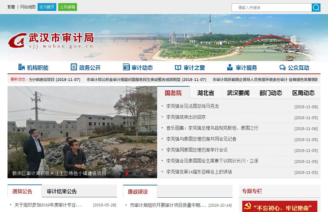 武汉市审计局是武汉市人民政府的职能部门,在市长和湖北省审计厅的双重领导下,负责全市的审计工作。其主要职责是:一、主管、统筹发展和组织协调全市审计业务工作。负责对市级财政收支和法律法规规定属于审计监督范围的财务收支的真实、合法和效益进行审计监督,维护财政经济秩序,提高财政资金使用效益,促进廉政建设,保障全市经济社会健康发展。对审计、专项审计调查和核查社会审计机构相关审计报告的结果承担责任,并负有督促被审计单位整改的责任。二、贯彻执行审计法律法规规章、审计工作方针政策;参与起草有关财经审计工作的地方性法规草案、政府规章草案;制定审计执法、审计管理制度办法并监督执行。制定并组织实施全市审计工作发展规划和专业领域审计工作规划,制定并组织实施年度审计计划。三、向市长提出年度市本级预算执行和其他财政收支情况的审计结果报告。受市人民政府委托向市人大常委会提出市本级预算执行情况和其他财政收支情况的审计工作报告、审计发现问题的纠正和处理结果报告。向市人民政府报告其他事项的审计和专项审计调查情况及结果。依法向社会公布审计结果。向市人民政府有关部门和区级人民政府通报审计情况和审计结果。四、根据《中华人民共和国审计法》的规定,直接进行下列审计事项,出具审计报告,在法定职权范围内做出审计决定、向有关主管机关提出处理处罚的建议或移送有关部门追究相应责任:(一)本级预算执行情况和其他财政收支,市直部门(含直属单位)预算的执行情况、决算和其他财政收支。(二)区级人民政府财政预算的执行情况、决算和其他财政收支,财政转移支付资金。(三)使用本级财政资金的事业单位和社会团体的财务收支。(四)市属国有企业和金融机构、国家规定的国有资本占控股或者占主导地位的企业和金融机构的资产、负债和损益。(五)市人民政府投资和以市人民政府投资为主的建设项目的工程管理、资金筹集管理、预算执行情况和决算。(六)市人民政府有关部门管理和社会团体受市人民政府委托管理的社会保障基金、环境保护、社会捐赠资金及其他有关基金、资金的财务收支。(七)国际组织和外国政府援助、贷款项目的财务收支。(八)其他法律、法规规定应由本级审计机关审计的其他事项。五、依据《中华人民共和国审计法》和有关规定,对国家机关和依法属于市审计局审计监督对象的党政和企事业单位领导干部,进行经济责任审计监督;依法受理被审计单位对审计机关审计决定的复议申请。六、组织实施对贯彻执行国家财经方针政策和宏观调控措施情况的行业审计、专项审计和审计调查;组织实施对市财经法律、法规、规章、政策和宏观调控措施执行情况、财政预算管理或国有资产管理使用等与市财政收支有关的特定事项进行专项审计调查。七、依法检查审计决定执行情况,督促纠正和处理审计发现的问题,依法办理被审计单位对审计决定提请的行政复议、行政诉讼或市人民政府裁决中的有关事项。协助配合有关部门查处相关重大经济案件。八、指导和监督内部审计工作,核查社会审计机构对依法属于市级审计机关监督对象的单位出具的相关审计报告。组织全市审计专业培训。九、依法领导和监督区级审计机关的业务,组织区级审计机关实施特定的专项审计或审计调查,纠正或责成纠正区级审计机关违反规定做出的审计决定。协同办理区级审计机关负责人的任免;负责管理本级审计机关派出审计机构。十、依法通过适当方式组织审计市属国有企业和金融机构的境外资产、负债和损益。十一、指导和推广信息技术在全市审计领域的应用,组织建设市审计信息系统。十二、承办上级交办的其他事项。