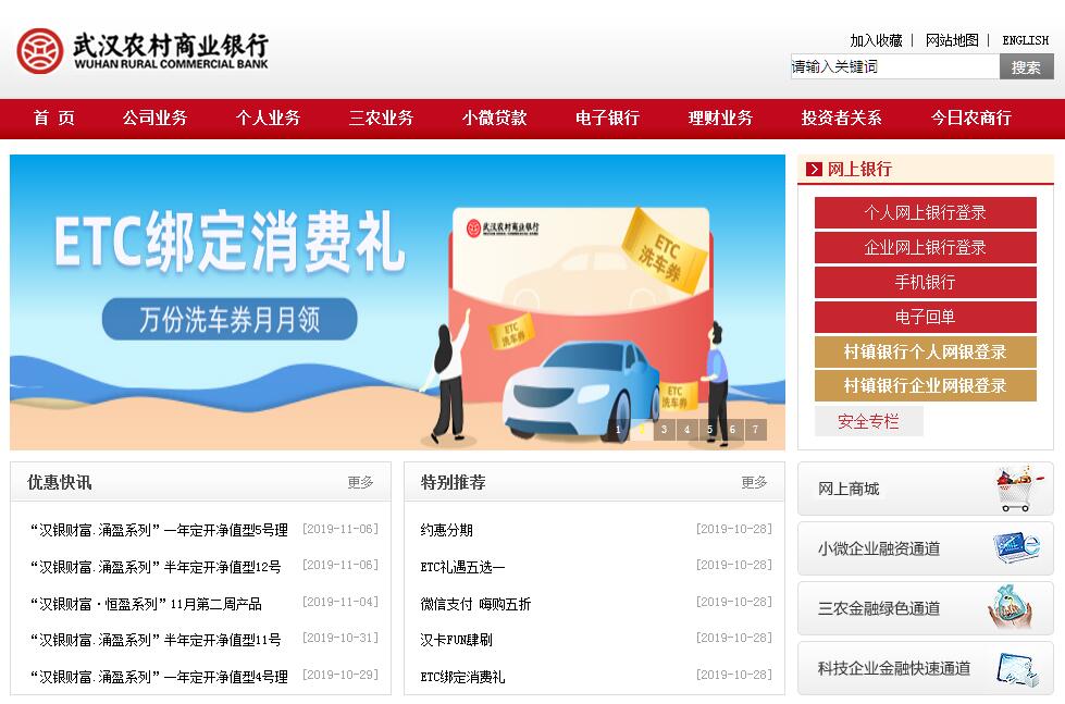 武汉农村商业银行是国务院、中国银监会批准成立的全国首家副省级省会城市农村商业银行,于2009年9月9日挂牌成立。十年来,武汉农村商业银行始终坚持服务三农、服务小微、服务民生的定位,用心用情服务地方经济、小微民营企业和普惠金融发展。截至目前,全行200余网点遍布武汉城乡各地,先后在湖北省内设立了咸宁分行、宜昌分行、黄冈分行,在江苏、广东、云南、海南、湖北、广西等六省设立47家村镇银行。全行综合经营指标位居武汉市金融同业“第一方阵”,在全国1000多家农商行中排名第十一位。2013年,国务院副总理马凯、银监会主席尚福林一行曾莅临视察,给予了“精耕细作、服务周到”的高度评价。近年来,武汉农村商业银行提出了打造“精品银行、特色银行、智慧银行”发展目标,全行大力践行“三服务”文化,秉承“实干兴行、创新强行、控险利行、从严治行”的经营理念,在支持实体经济和服务民生发展方面不断创新特色,成为科技型中小企业融资的首选银行。推出的专保贷、诚信纳税贷、商超贷等小微企业产品和“两权”贷、农房贷、农地贷、银保贷、惠农贷等“三农”经济专属产品,切实缓解小微民营企业融资难困。武汉农村商业银行助力打造武汉黄陂“木兰花乡”生态旅游区、蔡甸花博汇,已成为“美丽乡村”建设典型,先后被中央电视台等多家新闻媒体报道,是市民假日休闲生活优选目的地。作为一家地方金融机构,武汉农村商业银行积极践行绿色金融、健康金融、普惠金融,将自身发展与城市建设、市民美好生活紧密结合。全行综合纳税额在全市金融同业排名第一,多次被省、市政府授予“支持地方经济发展突出贡献奖”。先后支持了武汉国际渡江节、水上马拉松、武汉网球公开赛、亚洲杯田径锦标赛、亚洲杯篮球赛、亚洲杯羽毛球赛等武汉国际赛事;独家赞助《武汉印象》、《武汉·2049》出版发行;独家支持拍摄重大革命历史题材电影《忠诚与背叛》并荣获中宣部“五个一工程”奖;先后荣获了“中国服务业企业500强”、“全国十佳农商银行”、“湖北省文明单位”、“武汉市十佳和谐企业”、“创建幸福武汉十大突出贡献企业”、“武汉市优秀企业”、“武汉市五一劳动奖状”等重要荣誉。