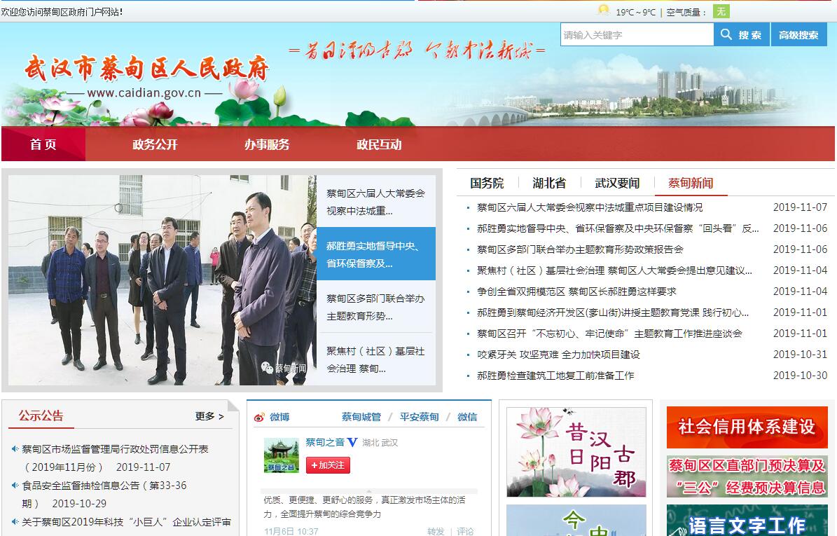 | 网站简介: 蔡甸区,隶属于湖北省武汉市,位于武汉市西郊,地处汉江与长江汇流的三角地带,江汉平原东部,北傍汉江,与东西湖区唇齿相依;南临通顺河,与汉南区山水相连;东濒长江,与江夏区隔水相望;西与汉川市交错接壤;东北邻汉阳区;西南邻仙桃市。介于东经113°41′—114°13′、北纬30°15′—30°41′之间,总面积1093.57平方千米。截至2018年,蔡甸区下辖12个街道、1个乡,另设有4个管委会,常住人口46.66万人,实现地区生产总值(GDP)476.07亿元,其中,第一产业增加值42.98亿元,第二产业增加值247.39亿元,第三产业增加值185.70亿元,一、二、三产业比重9.0:52.0:39.0。第二批国家农产品质量安全县。 |