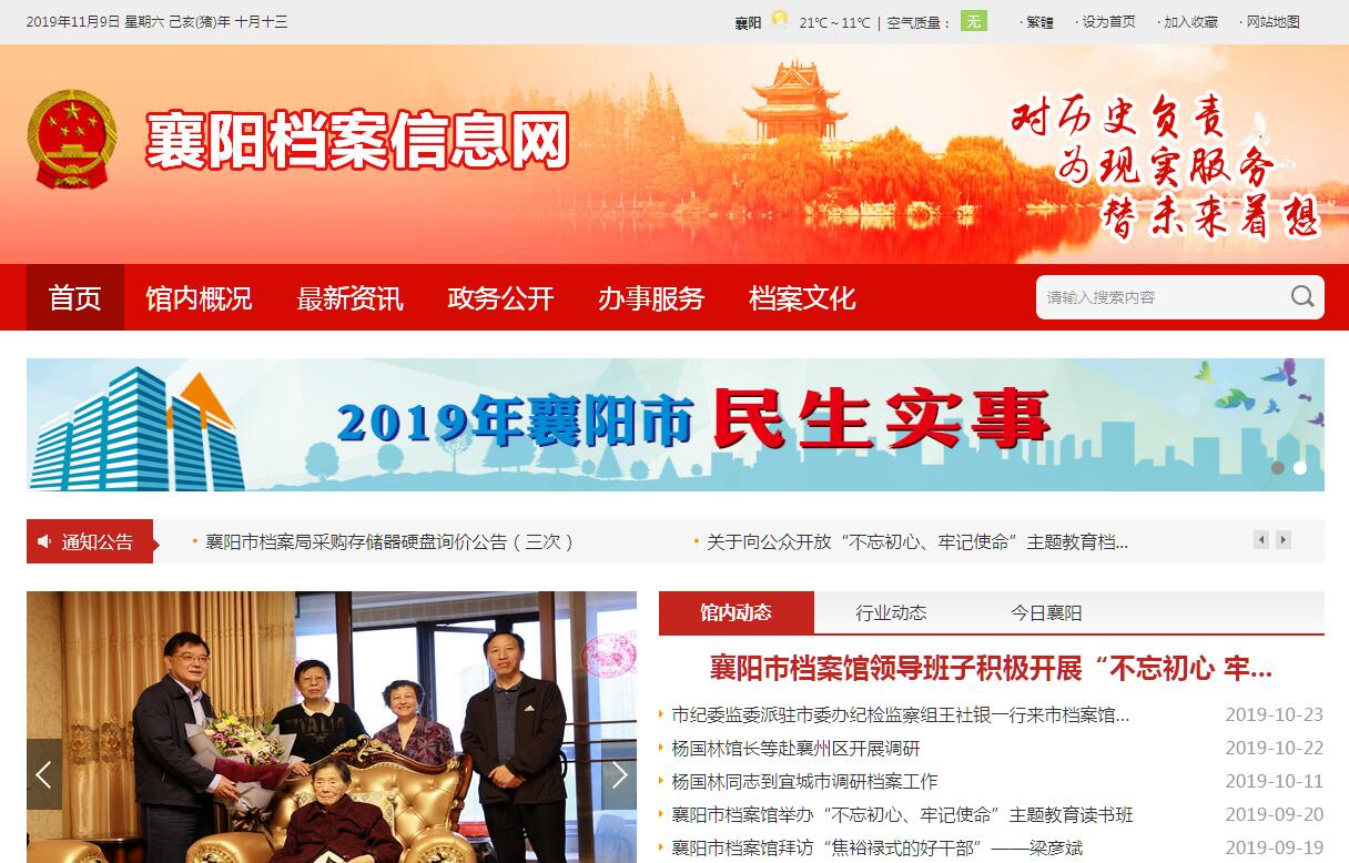 | 网站简介: 襄阳市档案馆成立于1959年, 截至2010年底,馆藏各门类载体档案资料165639卷(件、册)。其中,馆藏档案为236个全宗,132107卷(件),资料33532册。馆藏档案资料的时间跨度为明初以来600多年。 |