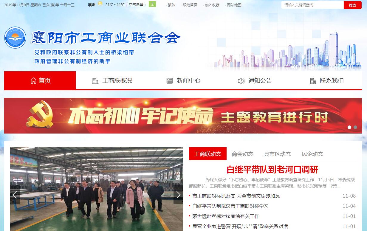 中国工商业联合会是中国共产党领导的中国工商界组成的人民团体和民间商会,是中国人民政治协商会议的组成单位之一,是党和政府联系非公有制经济人士的桥梁和纽带,是政府管理非公有制经济的助手。襄阳市工商业联合会是中国工商业联合会的地方组织,简称襄阳市工商联,又称襄阳市总商会,成立于1951年4月,截至2009年底,我会现有个人会员14530个,企业会员2978个,团体会员41个。市工商联直属商会11个,其中异地商会5个(襄阳市温州商会、襄阳市福清商会、襄阳市福建商会、襄阳市湖南商会、襄阳市广东商会),直属行业商会5个(五金机电行业商会、建筑装饰行业商会、汽车配件行业商会、副食百货供应商商会、家具行业商会),襄阳外地商会2个(昆明市襄阳商会、深圳市襄阳商会)。襄阳市工商联的主要职能与任务是:参与本市政治、经济、社会生活中的重要问题的政治协商,发挥参政议政民主监督作用;对有关非公有制经济的政策等问题进行研究和探讨,并协助贯彻执行;做好非公有制经济代表人士的思想政治工作,宣传、贯彻党和国家的方针政策;为会员提供经济法律咨询、融资、维权、科技、信息、新闻舆论、管理等服务,帮助会员改进经营管理,提高生产技术和产品质量;积极发展与港、澳、台及海外工商社团和工商经济界人士的合作与交流,推动经贸合作和技术交流,协助引进资金、技术、人才;举办和组织会员参加各种展销会、交易会,组织会员出国、出境考察访问,帮助会员开拓国内、国际市场;指导全市各级工商联(商会)和直属商会的工作,组织和管理同业公会、行业商会(协会)工作;协助有关部门做好私营企业协会、个体劳动者协会、异地商会和以非公有制经济为主体的社团组织的管理工作。改革开放以来,襄阳民营企业遍地开花,民营经济迅猛发展,为工商联、总商会工作提供了肥沃土壤。在新的历史时期,市工商联、总商会充分发挥"统战性"、"经济性"、"民间性"的特点和优势,积极引导非公有制经济人士健康成长,促进非公有制经济健康发展, 2008年10月市工商联全国工商联授予"全国工商联系统先进集体",近年来多次被评为全省工商联系统先进单位。
