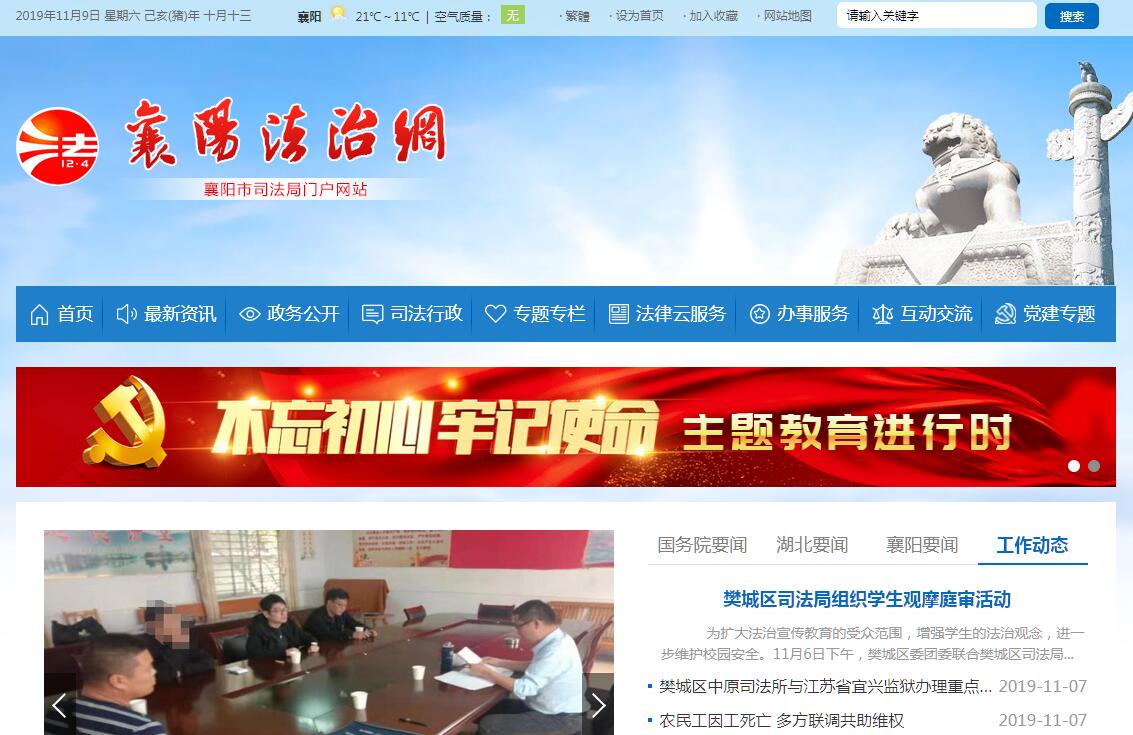 襄阳市司法局主要职责:(一)起草全市司法行政工作的规范性文件,拟订全市司法行政工作长期规划、年度工作计划并监督实施。(二)监督管理全市劳动教养管理工作并承担相应责任;指导、监督全市司法行政系统戒毒场所的管理工作。(三)拟订全市法制宣传教育工作和普及法律常识规划并组织实施;指导各地各行业的法制宣传、依法治理和对外法制宣传。(四)负责指导、监督全市律师、公证工作并承担相应责任。(五)监督管理全市法律援助工作。(六)指导、监督全市基层司法所建设、人民调解和基层法律服务工作;会同人民法院指导人民陪审员工作;参与社会治安综合治理工作。(七)指导、监督全市社区矫正工作,指导全市非监禁刑罚执行和刑释解教人员帮教安置工作。(八)负责组织实施本市国家司法考试工作并承担相应责任。(九)指导、监督全市司法鉴定管理工作;负责全市司法鉴定人和司法鉴定机构的登记管理工作。(十)指导、监督全市司法行政系统的法制工作;指导全市司法行政系统的涉港、澳、台法律事务及对外交流与合作;指导全市仲裁机构登记工作。(十一)负责全市司法行政系统枪支、弹药、服装和警车管理工作;指导、监督全市司法行政系统计划财务工作。(十二)加强全市司法行政队伍建设;负责管理局机关和直属单位干部人事工作;负责全市司法行政系统的警务管理和警务督察工作;协助各县(市)区管理司法局领导干部。(十三)统一规划市政府令的制定工作,拟定市政府令的年度制定计划,报经市政府批准后,组织指导有关部门实施。(十四)负责市政府及其办公室制发的规范性文件及其他文件的合法性审查工作;(十五)组织起草或审查修改市直各部门上报市政府的规范性文件草案;(十六)负责市政府规范性文件的编纂、清理工作;办理市政府各部门、各县(市、区)政府、各开发区管委会规范性文件的备案审查工作,办理市政府规范性文件的上报备案和解释工作,指导全市的规范性文件备案审查工作。(十七)承办国家、省人民代表大会常务委员会、省政府发给市政府的法律、法规、规章草案征求意见的工作,并受市政府委托提出、上报修改意见和建议;(十八)检查、指导全市各级行政机关推进依法行政工作,对全市各级行政执法机关的执法行为进行监督检查,协调各行政机关在执行法律、法规、规章中的矛盾和争议,负责建立全市推进依法行政工作报告制度,承办市政府向省政府和市人大报告依法行政情况的具体工作;(十九)负责全市行政执法责任制和评议考核制工作,以及实施相对集中行政处罚权、规范行政处罚权、规范行政处罚自由裁量权的监督、指导工作;(二十)承办由市政府管辖的行政复议案件和市政府在行政复议、诉讼案件中的应诉工作,监督、指导全市行政复议工作;(二十一)承办以市政府作为赔偿义务机关的行政赔偿事务,指导、协调全市行政赔偿工作;(二十二)负责市政府的法律顾问事务,负责市政府重要经济合同、协议的合法性审查工作,办理涉及市政府的民事纠纷、经济纠纷案件及其他非诉讼法律事务,指导市政府各部门和全市各级政府、各开发区管委会的法律顾问工作;(二十三)组织开展政府法制理论研究、政府法制宣传和培训工作,进行政府法制工作经验交流,做好政府法制咨询服务工作;(二十四)承办上级交办的其他工作。