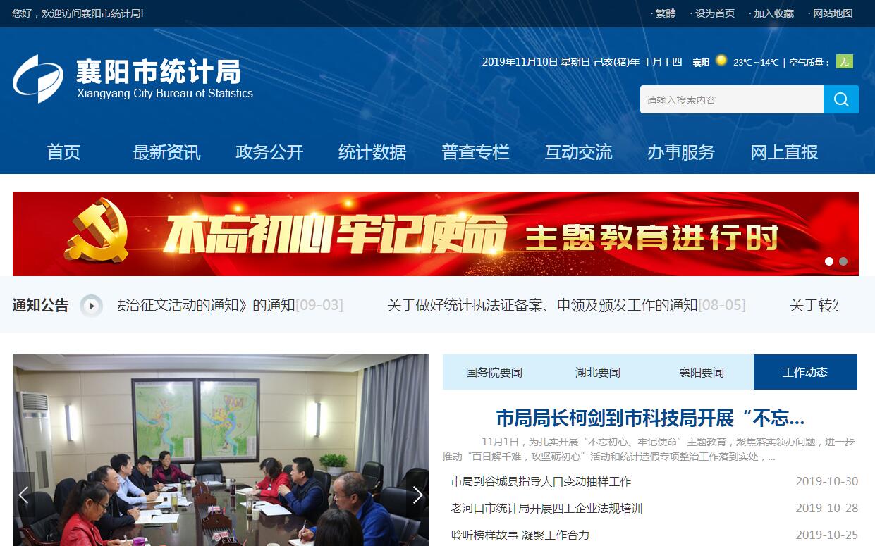 襄阳市统计局,为市政府工作部门。其主要职责是:(一)承担组织领导和协调全市统计工作,确保统计数据真实、准确、及时的责任。贯彻执行国家、省统计政策、规划、基本统计制度和统计标准,起草修订地方统计规范性文件,指导全市统计工作。(二)按照国家国民经济核算体系和核算制度,组织实施全市国民经济核算体系和投入产出调查,核算全市及各县(市)区国内生产总值,汇编提供全市国民经济核算资料,监督管理各县(市)区国民经济核算工作。(三)会同有关部门组织实施全市人口、经济、农业等重大国情国力普查,汇总、整理和提供全市有关国情国力方面的统计数据。(四)组织实施全市农林牧渔业、工业、建筑业、批发和零售业、住宿和餐饮业、房地产业、租赁和商务服务业、居民服务和其他服务业、文化体育和娱乐业以及装卸搬运和其他运输服务业、仓储业、计算机服务业、软件业、科技交流和推广服务业、社会福利业等统计调查,收集、汇总、整理和提供有关调查的统计数据,综合整理和提供旅游、交通运输、邮政、教育、卫生、社会保障、公用事业等全市性基本统计数据。(五)组织实施全市能源、投资、消费、价格、收入、科技、人口、劳动力、社会发展基本情况、环境基本状况等统计调查,收集、汇总、整理和提供有关调查的统计数据,综合整理和提供资源、房屋、对外贸易、对外经济等全市性基本统计数据。(六)组织各县(市)区、各部门的经济、社会、科技和资源环境统计调查,统一核定、管理、公布全市性基本统计资料,定期发布全市国民经济和社会发展情况的统计信息,组织建立服务业统计信息共享制度和发布制度。(七)对全市国民经济、社会发展、科技进步和资源环境等情况进行统计分析、统计预测和统计监督,向市委、市政府及有关部门提供统计信息和咨询建议。(八)依法审批或者备案各部门统计调查项目、地方统计调查项目,指导专业统计基础工作、统计基层业务基础建设,建立健全全市统计数据质量审核、监控和评估制度,开展对重要统计数据的审核、监控和评估,依法监督管理全市涉外调查活动。(九)协助省统计局和地方做好各县(市)区统计局、省属调查队的干部考察和任免审核工作;指导全市统计专业技术队伍建设,会同有关部门组织管理全市统计专业资格考试、职务评聘和从业资格认定工作;监督管理各县(市)区政府统计部门由中央、省、市财政提供的统计经费和专项基本建设投资。(十)建立并管理全市统计信息自动化系统和统计数据库系统,建立和维护全市基本单位名录库,贯彻执行国家制定的各县(市)区、各部门统计数据库和网络的基本标准和运行规则,指导各县(市)区统计信息化系统建设。(十一)收集、整理市际统计数据,组织实施市际间统计资料交换和统计交流合作项目。组织开展统计科学研究和指导统计学会工作。组织管理和指导社情民意调查工作。(十二)承办上级交办的其他事项。