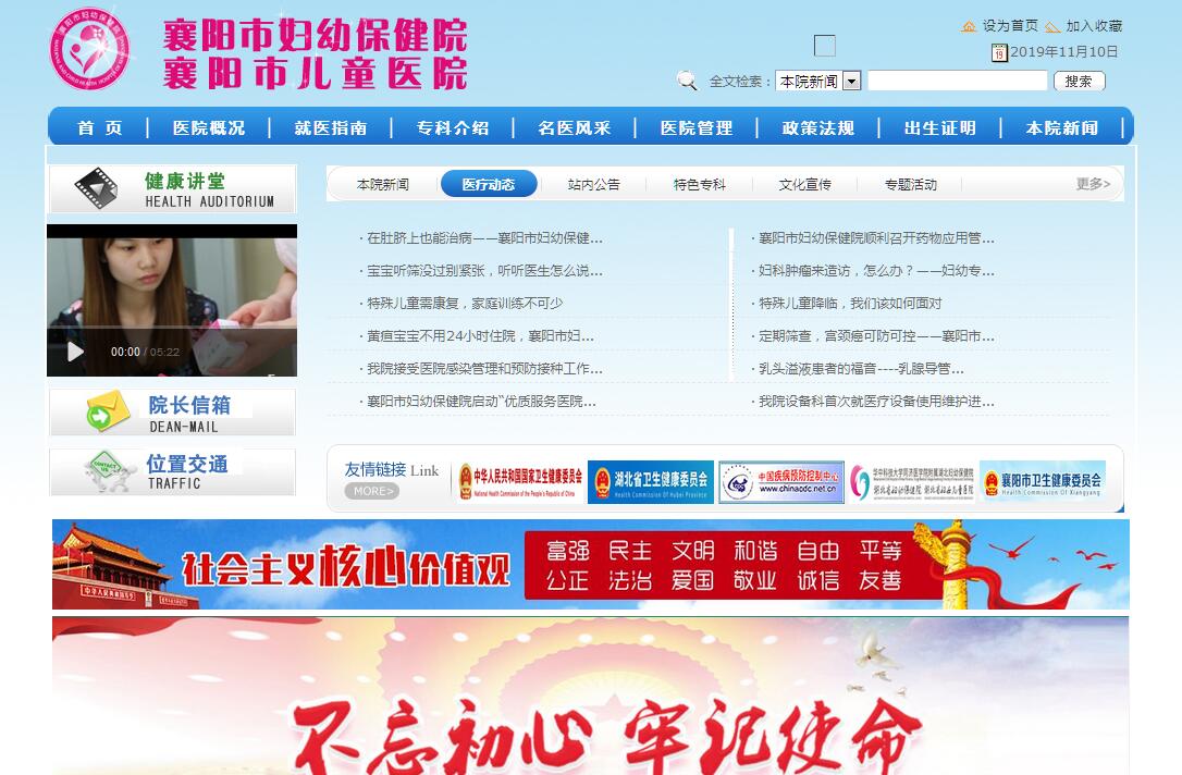 襄阳市妇幼保健院(暨襄阳市儿童医院) 成立于1960年10月,至今已有近60年历史,由原市妇幼保健院和市儿童保健所合并而成,分江南江北两个院区,集保健、医疗、教学、科研、健康教育、信息管理为一体,是湖北省首批爱婴医院、三级优秀妇幼保健院,先后荣获全国妇幼卫生工作先进单位、省级文明单位和全省价格诚信单位等称号。2013年获省卫计委颁发的“全省群众最满意医疗机构提名奖”,2013、2014年省卫计委连续两年在全省各级医疗机构创无烟单位暗访中,名列前10,在我市位居第一。分设在襄城檀溪路、樊城春园路的两个工作区占地33.4亩,业务用房19000平米。固定资产1亿元。2012年加挂襄阳市儿童医院。2014年9月,在卫生计生机构合并中,我院更名为襄阳市妇幼保健计划生育服务中心,保留了市妇幼保健院和市儿童医院两块牌子。全院现有员工457人,其中在编人员 227人,聘用人员230人,另离退休人员124人。在职人员中,卫生技术人员占82.49 %,其中高级职称33人、中级153人。设党办、院办、保健部、医务科等15个职能科室;开设妇产科、儿科、儿童保健、妇女保健等专科业务,儿童生长发育、妇女宫颈疾病专科为省级重点专科;全院装备有实时四维彩超、三维B超、全自动生化分析仪、微量元素检测仪、TCT检测系统、病理学检查、染色体核型分析系统、超敏CRP检测系统、电子阴道镜、利普刀等万元以上设备420余台(件);先后发现7例世界首报的异常染色体核型;7项科研成果达到国内领先水平。住院开设病床210张,2017年我院全年门诊量32万人次,住院10455人次。建院以来,本院秉持妇幼卫生工作方针和正确的办院方向,推进科学发展,取得明显成效:——“以保健为中心,以生殖健康为目的”。相继开展孕产妇和儿童系统管理、爱婴医院创建、出生缺陷监测、新生儿疾病筛查,指导全市开展“降低孕产妇死亡率、消除新生儿破伤风”、“母婴安全工程”、“妇女病普查”等项目,带动孕产妇急救绿色通道和“放心产房”建设,监管全市预防艾滋病、梅毒、乙肝母婴传播工作,全市孕产妇和儿童死亡率等重要指标优于全省平均水平。——“保健与临床相结合”。开展染色体核型分析,迄今发现7例世界首报的异常染色体核型;开展阴式子宫切除术、宫颈癌根治术、无痛人流、无痛分娩;积极投入防治手足口病等公共卫生应急工作;建立新生儿重症监护病房,抢救成功率在98%以上;积极推行优质护理服务;启动预约就诊服务。——“面向基层、面向群体”。依据《母婴保健法》及其管理办法,按照《湖北省孕产妇系统管理实施细则》,规范推行以高危妊娠管理、围产期保健为重点的孕产妇系统管理,形成系列化保健服务品牌。妇保科常年坚持城乡妇女病查治,开展婚前保健、孕前咨询与生育指导、妇女营养评价指导、产后康复、更年期保健等,不断满足群众需要。认真开展新生儿疾病筛查、诊断、治疗和随访。《宫颈癌筛查治疗管理流程研究》、《新生儿疾病筛查管理模式研究》等五项课题达到国内领先水平。——“预防为主”。与市妇联合办“女性健康家园”,定期开展保健讲座和优惠活动。大力推进健康教育,通过本院网站和主流媒体普及健康教育知识;健康教育资料多样化,孕妇学校、新婚学校、父母学校活动经常化;开设24小时健康免费咨询热线;定期举办“健康宝贝”课堂;组织专家进社区、到学校、下基层,针对群众所需举办保健知识讲座,发放健康教育处方、手册、扑克牌、VCD等资料,引导广大群众科学的健康理念和生活方式。健美儿评选活动自1985年起,每年从十万余名儿童中通过生长发育监测、智力筛查评选出千名体格健壮、智力聪颖的儿童,活动覆盖四县三市、27个社区、106所幼儿园,引导着两代襄阳人的科学育儿理念。孕产妇死亡病例年度评审等工作为政府制定干预措施提供了科学依据。近年,本院积极投身妇幼卫生重大专项工作,一是健康明天行动。免费为全市0—6岁儿童开展12种疫苗的预防接种,对15岁以下儿童开展乙肝疫苗查漏补种,对全市8月龄—4岁儿童实施麻疹疫苗强化免疫。二是健康宝宝行动。开展农村适龄妇女增补叶酸预防神经管缺陷项目,努力提高人口出生素质。三是母婴安全行动。实施农村孕产妇住院分娩补助项目,促进提高住院分娩率,进一步保障母婴安全。四是关爱健康行动。指导社区卫生服务中心为城市居民建立健康档案,促进辖区居民获得方便、免费的基本公共卫生服务,不断开创妇幼卫生工作新局面,夯实承接国家医改政策平台。