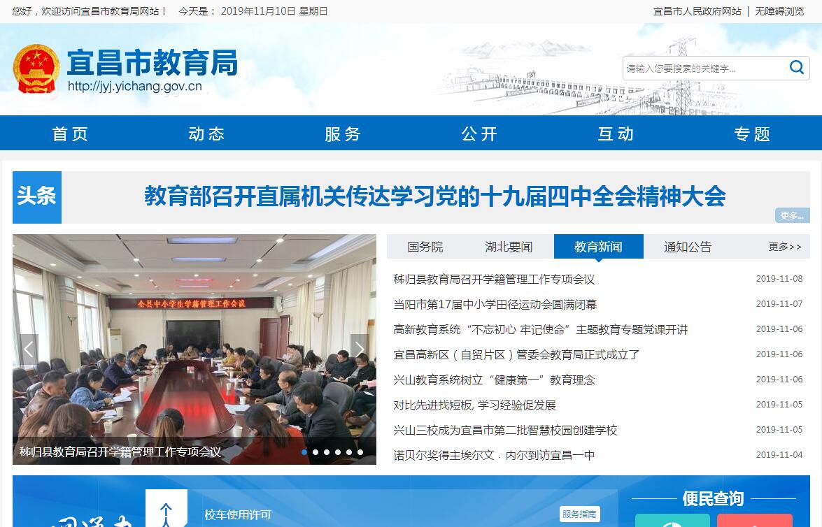 宜昌市教育局,为市政府工作部门。其主要职责是:(一)贯彻执行党和国家关于教育工作的各项方针、政策和法律、法规;拟订有关教育的规范性文件。(二)负责局机关和直属单位的党群工作、思想政治工作和文明创建工作;按照规定的干部管理权限,负责直属单位的领导班子建设及干部管理、后备干部队伍建设工作;指导、协调教育系统干部培训工作。(三)负责全市各级各类教育的统筹规划和协调管理;指导协调全市各级各类学校的教育、教学改革。(四)负责本部门教育经费的统筹管理;参与拟订筹措教育经费、教育拨款、教育基建投资的方案和管理办法;监督全市教育经费的筹措和使用;组织指导资助贫困家庭学生工作。(五)负责义务教育的指导与协调,推进义务教育均衡发展,促进教育公平;指导普通高中教育、幼儿教育、特殊教育工作,全面实施素质教育;督促检查全市中等和初等教育各类学校办学标准、教学基本要求的落实情况;组织审定中等和初等学校的地方课程教材;统筹和指导全市少数民族教育工作。(六)统筹管理全市基础教育、职业教育、成人教育、民办教育;负责全市普通高中、中等职业学校的设置、合并、撤销的审核申报工作;负责中等职业学校招生管理、学生学籍管理、毕业证书的审验和发放工作;指导全市成人教育工作;联系高等院校;负责全市民办教育学校与成人教育学校(机构)的审批和管理。(七)主管全市教师工作;组织实施各级各类教师资格证书制度;统筹规划学校教师和管理人员队伍建设;会同有关部门做好教师技术职务评审工作;指导全市教育系统人才队伍建设。(八)指导各级各类学校思想政治教育工作、德育工作、体育卫生与艺术教育及国防教育工作。(九)指导全市的教育督导工作;负责组织和指导对中等及中等以下教育、扫除青壮年文盲工作的督促检查和评估验收工作;对县(市、区)人民政府贯彻执行国家有关教育方针、政策的情况进行检查、评估。(十)统筹管理全市各类高等学历教育的招生考试工作;参与拟订大中专毕业生就业政策措施,指导大中专学校毕业生开展就业创业工作;承担全市干部继续教育学历学位审核认定工作。(十一)检查、指导学校日常安全管理和社会治安综合治理工作;组织开展安全文明校园创建活动;协调有关职能部门开展校园周边环境综合整治等工作;负责全市教育系统普法依法治理和维护稳定工作。(十二)组织指导全市教育方面的对外交流与合作;负责外籍教师的有关管理工作。(十三)指导、协调全市各级各类学校的后勤工作、电化教育、信息化建设以及教学仪器设备和图书资料的装备工作;负责全市教育基本信息统计、分析和发布;指导有关的教育学会、协会、基金会的工作。(十四)贯彻执行国家语言文字工作的方针、政策;组织协调对语言文字规范和标准的监督检查;指导推广普通话和普通话的测试工作。(十五)承办上级交办的其他事项。