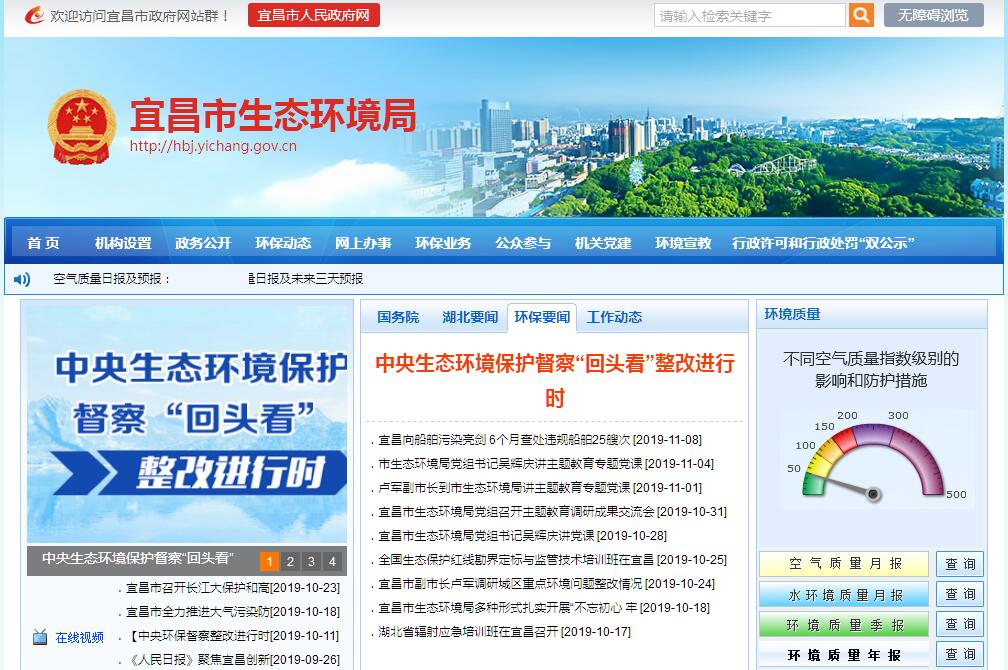 宜昌市生态环境局主要职责:(一)贯彻执行国家生态环境基本制度。执行国家生态环境领域的法律法规、政策和标准,会同有关部门拟订生态环境政策、规划并组织实施,起草生态环境领域有关地方性法规、政府规章草案和规范性文件。会同有关部门编制并监督实施重点区域、流域、饮用水水源地生态环境规划和水功能区划。(二)负责重大生态环境问题的统筹协调和监督管理。牵头协调重特大环境污染事故和生态破坏事件的调查处理,指导协调地方政府对重特大突发生态环境事件的应急、预警工作。牵头指导实施生态环境损害赔偿制度,协调解决有关跨区域、跨流域环境污染纠纷,统筹协调重点区域、流域生态环境保护工作。(三)负责监督管理全市减排目标的落实。贯彻落实污染物排放总量控制、排污许可证制度,监督检查县(市、区)污染物减排任务完成情况,实施生态环境保护目标责任制。指导排污权有偿使用和交易工作。(四)负责提出生态环境领域固定资产投资规模和方向、市级生态环境财政性资金安排意见,配合有关部门做好组织实施和监督工作。(五)负责环境污染防治的监督管理。组织拟订全市大气、水、土壤、噪声等环境管理制度及光、恶臭、固体废物、化学品以及机动车等污染防治措施并监督实施。负责土壤、地下水等污染防治和生态保护的监督管理。会同有关部门监督管理饮用水水源地生态环境保护工作,组织指导城乡生态环境综合整治工作,监督指导农业面源污染治理工作。监督指导区域大气环境保护工作,组织实施区域大气污染联防联控协作机制。(六)指导协调和监督生态保护修复工作。组织编制生态保护规划,监督对生态环境有影响的自然资源开发利用活动、重要生态环境建设和生态破坏恢复工作。组织制定各类自然保护地生态环境监管制度并监督执法。监督野生动植物保护、湿地生态环境保护、荒漠化防治等工作。指导协调和监督农村生态环境保护,监督生物技术环境安全,牵 头生物物种(含遗传资源)工作,组织协调生物多样性保护工作。参与生态保护补偿工作。(七)负责核与辐射安全的监督管理。贯彻落实国家有关政策、规划、标准,参与核事故应急处理,负责辐射环境事故应急处理工作。组织实施全市辐射环境监测和核设施、重点辐射源的监督性监测。监督管理核设施和放射源安全,监督管理核设施、核技术应用、电磁辐射、伴有放射性矿产资源开发利用中的污染防治。(八)负责生态环境准入监督管理。对重大经济和技术政策、发展规划以及重大经济开发计划提出环境保护意见。按规定审批或审查重大开发建设区域、规划、项目环境影响评价文件。拟订并组织实施生态环境准入清单。(九)负责生态环境监测、统计和信息发布工作。监管实施生态环境监测制度、规范及相关标准。会同有关部门统一规划生态环境质量监测站点设置,组织实施全市生态环境执法性监测、污染源监督性监测、温室气体减排监测、应急监测。组织开展生态环境质量状况调查评价、预警预测,组织建设和管理全市生态环境监测网和生态环境信息网。依法公开生态环境信息,建立和实行生态环境质量公告制度,统一发布全市生态环境综合性报告和重大生态环境信息。(十)负责应对气候变化工作。组织拟订并实施应对气候变化的规划和政策措施。负责市承担的国家履行联合国气侯变化框架公约相关工作。(十一)组织协调生态环境保护督察工作。根据授权对市县有关部门贯彻落实中央和省委生态环境保护决策部署情况进行协调和督办。协调落实中央、省委生态环境保护督察反馈意见整改工作。(十二)负责生态环境监督执法。组织开展全市生态环境保护执法检查活动。组织开展环境保护专项行动和专项治理工作。负责查处重大生态环境违法问题,查处跨区域、流域重大生态环境违法问题。组织指导和协调全市生态环境保护综合执法队伍建设和业务工作。(十三)组织指导和协调生态环境宣传教育工作,制定并组织实施生态环境保护宣传教育计划,推动社会组织和公众参与生态环境保护。(十四)开展生态环境科技和对外合作交流工作。组织生态环境重大科学研究和技术工程示范,推动生态环境技术管理体系建设,参与指导推动循环经济和生态环保产业发展。组织协调有关生态环境国际条约市内履约活动,参与处理涉外生态环境事务。(十五)完成上级交办的其他任务。