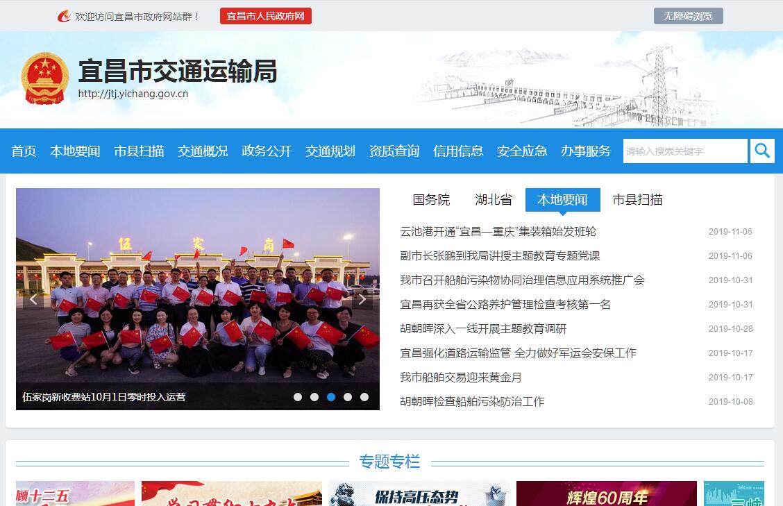 宜昌市交通运输局,为市政府工作部门。其主要职责是:(一)组织拟订地方性交通运输发展战略、产业政策和市政府规范性文件,指导全市交通运输行政执法和行业有关体制改革工作。(二)负责全市交通运输行业管理,承担协调服务民用航空、铁路、邮政等工作,承担涉及全市综合运输体系的规划协调工作,承担交通运输行业统计工作。(三)拟订全市公路、水路等行业发展规划、政策措施和标准并监督实施。参与拟订物流业发展战略和规划,拟订有关政策措施和标准并监督实施。(四)负责全市道路、水路运输市场监管,制定有关政策措施、准入制度、技术标准和运营规范并监督实施。统筹城乡交通运输协调发展,指导全市城乡客运及有关设施的规划和管理工作,负责地方水上交通安全的监督管理。(五)负责全市公路、水路建设和养护市场监管。制定公路、水路工程建设和养护相关政策措施、制度和技术标准并监督实施。组织协调公路、水路有关重点工程建设和工程质量、安全生产监督管理工作。(六)拟订全市公路、水路固定资产投资规模和建设项目,编制年度计划和市财政性资金预算意见,按市政府规定权限审查、审批交通固定资产投资项目。组织协调全市交通规费征收、使用的监督管理工作。(七)指导全市公路、水路运输应急管理工作,指导重点干线公路网的运行监测,承担交通战备有关工作。(八)指导全市交通运输信息化建设,指导全市公路、水路行业科技、环保、节能减排工作。(九)指导全市交通行业的思想政治工作、精神文明建设和职工队伍建设。(十)负责组织、指导全市交通行业职业教育、培训、职业技能鉴定;负责全市汽车驾驶学校和驾驶员培训工作的行业管理;组织实施和管理交通行业科技开发、项目攻关,推进行业科技进步。(十一)负责全市公路、水路对外合作和交流。(十二)为大企业、项目建设提供“直通车”服务。(十三)承办上级交办的其他事项。