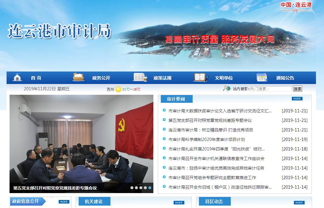 连云港市审计局主要职责:(一)主管全市审计工作。贯彻执行国家和省审计方针政策和法律法规,对上级审计机关和市委、市政府的有关审计、财政经济等方面的规范性文件草案提出相关政策建议。负责对市财政收支和法律、法规规定属于审计监督范围的财务收支的真实、合法和效益进行审计监督,维护财政经济秩序,提高财政资金使用效益,促进廉政建设,保障全市经济和社会健康发展。对审计、专项审计调查和核查社会审计机构相关审计报告的结果承担责任,并负有督促被审计单位整改的责任。(二)拟订并组织实施全市审计工作发展规划和专业领域审计工作规划,制定并组织实施年度审计计划,对直接审计、调查和核查的事项依法进行审计评价,做出审计决定或提出审计建议。(三)向市政府和省审计厅提出年度市级预算执行和其他财政收支情况的审计结果报告。受市政府委托向市人大常委会提出市级预算执行和其他财政收支情况的审计工作报告、审计发现问题的纠正和处理结果报告。向市政府和省审计厅报告对其他事项的审计与专项审计调查情况及结果。依法向社会公布审计结果。向市政府有关部门和县(区)政府通报审计情况及审计结果。(四)直接审计下列事项,出具审计报告,在法定职权范围内做出审计决定或向有关主管机关提出处理处罚的建议:1.市级预算执行情况和其他财政收支,市直各部门(含直属单位)预算的执行情况、决算和其他财政收支。2.县(区)政府预算的执行情况、决算和其他财政收支。3.使用市级财政资金的事业单位和社会团体的财务收支。4.市级政府投资和以市级政府投资为主的建设项目的实施情况和预算执行情况及决算。5.市属国有企业和金融机构、市政府规定的市属国有资本占控股或主导地位的企业和金融机构的资产、负债及损益。6.市政府部门、县(区)政府管理和其他单位受市政府及其部门委托管理的社会保障基金、社会捐赠资金及其他有关基金、资金的财务收支。7.根据省审计厅授权,对国际组织和外国政府援助、贷款项目的财务收支进行审计监督。8.法律、行政法规和地方性法规规定应由市审计局审计的其他事项。(五)按规定对市管领导干部及依法属于市审计局审计监督对象的其他单位主要负责人实施经济责任审计。(六)根据上级审计机关授权或安排,组织实施对国家财经法律、法规、规章、政策和宏观调控措施执行情况、财政预算管理或国有资产管理使用等与国家和省财政收支有关的特定事项进行专项审计调查。(七)依法检查审计决定执行情况,督促纠正和处理审计发现的问题,依法办理被审计单位对审计决定提请行政复议、行政诉讼或市政府裁决中的有关事项。协助配合有关部门查处相关重大案件。(八)指导和监督内部审计工作,核查社会审计机构对依法属于审计监督对象的单位出具的相关审计报告。(九)与县(区)政府共同领导县(区)审计机关。依法领导和监督下级审计机关的业务,组织下级审计机关实施特定项目的专项审计或审计调查,纠正或责成纠正下级审计机关违反国家规定做出的审计决定。按照干部管理权限协管县(区)审计机关负责人。(十)指导和推广信息技术在全市审计领域的应用,组织建设全市审计信息系统。(十一)承办市政府和省审计厅交办的其他事项。