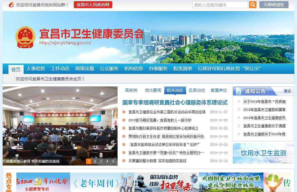 根据宜昌市委办公室、市政府办公室《关于印发<宜昌市卫生健康委员会职能配置、内设机构和人员编制规定>的通知》(宜办文[2019]27号),宜昌市卫生健康委员会为市政府工作部门,其主要职责是:(一)贯彻落实国民健康政策,起草卫生健康事业发展的政府规章草案、规范性文件和政策措施、规划,制定地方标准和技术规范并组织实施。统筹规划全市卫生健康资源配置,指导区域卫生健康规划的编制和实施。协调推进健康宜昌建设。制定并组织实施推进卫生健康基本公共服务均等化、普惠化、便捷化和公共资源向基层延伸等政策措施。(二)协调推进深化医药卫生体制改革,研究提出深化医药卫生体制改革重大政策、任务、措施的建议。组织深化公立医院综合改革,推进管办分离,健全现代医院管理制度,制定并组织实施推动卫生健康公共服务提供主体多元化、提供方式多样化的政策措施。提出医疗服务和药品价格政策的建议。承担市深化医药卫生体制改革工作领导小组办公室职责。(三)组织实施国家免疫规划,制定并落实全市疾病预防控制规划以及严重危害人民健康公共卫生问题的干预措施,组织开展传染病监测。负责卫生应急工作,组织指导突发公共卫生事件的预防控制和各类突发公共事件的医疗卫生救援。(四)组织拟订并协调落实应对人口老龄化政策措施,负责推进全市老年健康服务体系建设和医养结合工作。(五)贯彻落实国家药物政策和国家基本药物制度,开展药品使用监测、临床综合评价和短缺药品预警,提出符合全市实际的国家基本药物价格政策的建议,执行国家药典。组织开展食品安全风险监测评估,依法制定并公布食品安全地方标准。(六)负责职责范围内的职业卫生、放射卫生、环境卫生、学校卫生、公共场所卫生、饮用水卫生等公共卫生的监督管理,负责传染病防治监督,健全卫生健康综合监督体系。(七)制定全市医疗机构、医疗服务行业管理办法并监督实施,加强行风建设,建立医疗服务评价和监督管理体系。会同有关部门贯彻执行国家卫生健康专业技术人员资格标准。制定并组织实施医疗服务规范、标准和卫生健康专业技术人员执业规则、服务规范。(八)负责计划生育管理和服务工作,开展人口监测预警,研究提出人口与家庭发展相关政策建议,完善计划生育政策措施。(九)指导全市卫生健康工作,指导基层医疗卫生、妇幼健康服务体系和全科医生队伍建设。推进卫生健康科技创新发展。(十)负责全市保健对象的医疗保健工作,承担市委、市政府重要会议与重大活动的医疗卫生保障工作。(十一)制定实施全市中医药发展规划,促进市中医药事业发展,推动全市中医药标准化和现代化。组织开展全市中医药人才培养、师承教育工作,推广中医药科技成果和适宜技术,传承和发展中医药文化。组织开展全市中药资源普查。加强中医药行业监管。(十二)负责本行业(本系统)生态环境保护及安全生产监督管理工作。(十三)归口管理市计划生育协会。(十四)完成上级交办的其他任务。