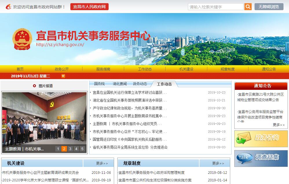 根据宜昌市机构编制委员会《关于调整市直有关部门编制事项的通知》(宜编【2019】5号)精神,宜昌市机关事务管理局更名为宜昌市机关事务服务中心。其主要职责是:(一)根据党和国家的有关方针政策,结合市直机关具体情况,研究拟订关于机关事务工作管理办法及有关规章制度并组织实施。(二)对机关事务改革、发展进行政策研究和指导;会同有关部门协调解决机关事务工作中的共性问题。(三)制定市直机关财务管理制度并监督执行;负责市直部分单位财务工作。(四)会同有关部门承担市直行政事业单位国有资产管理工作。(五)负责市直机关行政房产的综合管理,拟订规章制度并组织实施;负责市直机关办公用房的规划,组织管理建设项目;负责组织、协调市直机关办公用房的分配、调整和修缮工作;协调管理市直机关直管房售房资金和维修资金。(六)负责市公共机构节约能源管理工作,会同有关部门制定规划、规章制度并组织实施;组织指导公共机构能耗统计、监督和评价考核工作;参与推动公共机构节能。(七)负责市直机关服务保障及设施设备运行管理工作。(八)负责市直机关办公区、干部职工集中居住区绿化美化、环境卫生及供水、供电、供气的管理工作。(九)负责市直机关安全保卫、消防和社会治安综合治理工作,会同相关部门管理办公区域的工作秩序。(十)负责指定市级领导干部及有关离退休干部的生活保障服务。(十一)指导并组织实施市直机关及直属单位后勤员工培训工作。(十二)承办上级交办的其他事项。