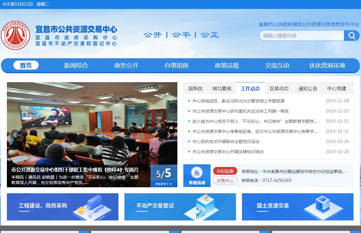 宜昌市公共资源交易中心(宜昌市政府采购中心、宜昌市不动产交易和登记中心)贯彻落实党中央关于公共资源交易、自然资源确权与不动产登记、房屋交易管理工作的方针政策和决策部署,落实省委、市委工作要求,在履行职责过程中坚持和加强党对公共资源交易和不动产交易登记工作的集中统一领导。其主要职责是:(一)贯彻落实国家、省、市关于公共资源交易、自然资源确权与不动产登记、房屋交易管理等法律法规和行政规章及有关政策规定。(二)负责建立完善公共资源交易平台和不动产交易登记平台相关管理制度、操作规程和服务标准并组织实施。(三)组织实施市级工程建设项目招标投标、国有建设用地使用权和矿产资源使用权出让、国有产权交易、政府采购、医用耗材招标采购等各类公共资源交易活动,承担城区(不含夷陵区)商品房和存量房交易合同网签、租赁合同备案以及城区(不含夷陵区)房屋、林地、土地、水、草原资源等自然资源和不动产的交易登记工作。(四)负责公共资源电子交易平台和不动产交易登记基础信息平台的建设、管理和维护,为公共资源交易活动和不动产交易登记各方主体提供场地、电子交易、网络等专项服务。(五)根据有关规定向社会公开发布各类公共资源交易和城区(不含夷陵区)不动产交易登记相关信息,负责信息数据的统计分析。(六)负责公共资源交易现场管理和交易见证服务,收集、整理、保存市级公共资源交易活动和城区(不含夷陵区)不动产登记簿册等相关档案资料,依据有关规定提供信息查询服务。(七)负责托管公共资源交易当事人交易保证金和不动产交易登记当事人交易资金,负责城区(不含夷陵区)住房维修资金的归集和使用拨付的相关服务性工作。(八)协助行业主管部门和综合监管部门做好市级公共资源交易监督管理和不动产交易登记管理等工作。(九)指导县(市、区)公共资源交易中心业务工作。(十)完成上级交办的其他任务。