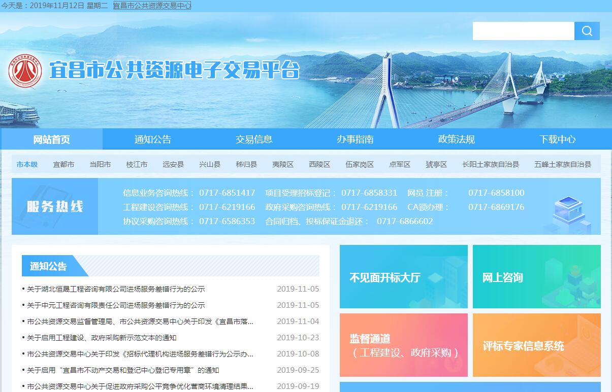 | 网站简介: 宜昌市公共资源电子交易平台由宜昌市公共资源交易中心主办。 |