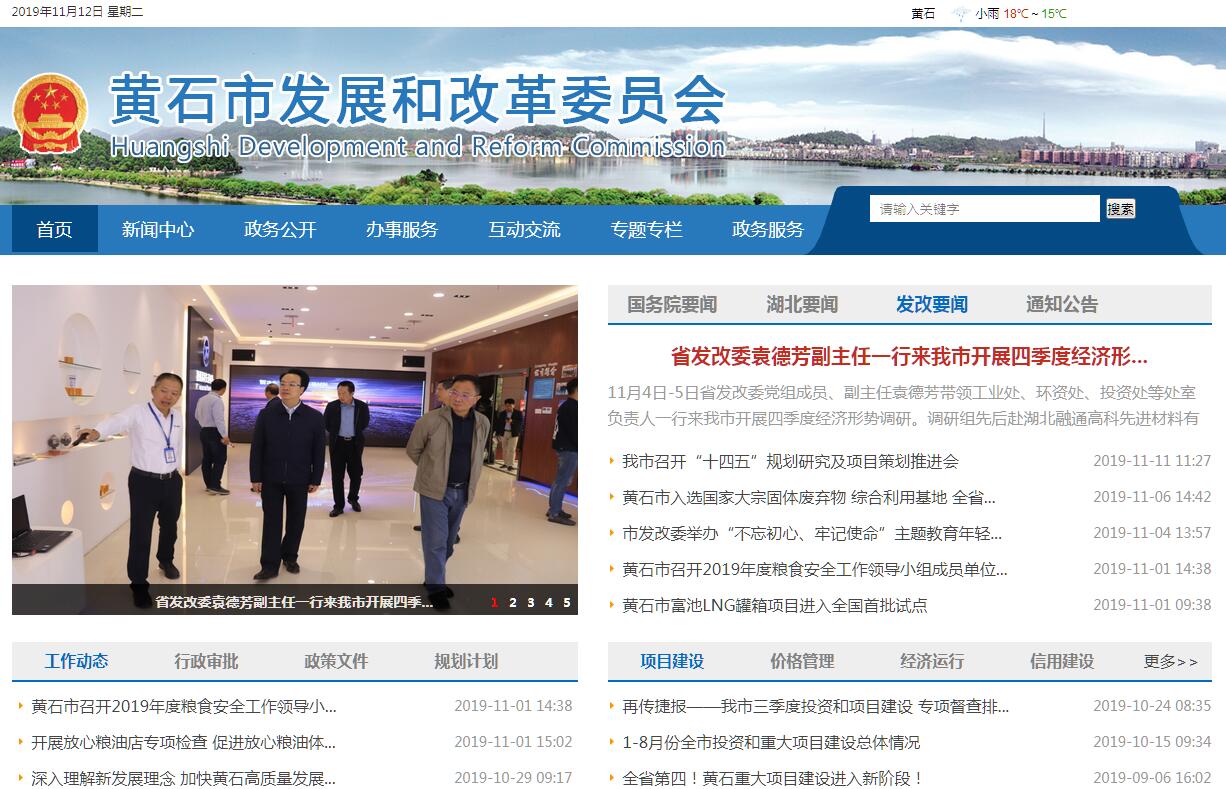 黄石市发展和改革委员会主要职责:(一)拟订并组织实施市国民经济和社会发展战略、中长期规划和年度计划。牵头组织统一规划体系建设。负责市级专项规划、区域规划、空间规划与市级发展规划的统筹衔接。起草国民经济和社会发展、经济体制改革的有关地方规范性文件。(二)提出加快建设全市现代化经济体系、推动高质量发展的总体目标、重大任务以及相关政策。组织开展重大战略规划、重大政策、重大工程等评估督导,提出相关调整建议。(三)统筹提出全市国民经济和社会发展主要目标,监测预警全币经济和社会发展态势趋势,提出调控管理政策建议。综合协调落买经济政策,牵头研究经济应对措施。调节全市经济运行,协调解决经济运行中的重大问题。按权限拟订并组织实施有关价格政策,组织制定和调整授权市级管理的商品、服务价格和收费标准。(四)指导推进和综合协调全市经济体制改革有关工作,提出相关改革建议。牵头推进供给侧结构性改革。协调推进全市产权制度和要素市场化配置改革。推动完善基本经济制度和现代市场体系建设,会同相关部门组织实施市场准入负面清单制度。牵头推进全市优化营商环境工作。协调推进国家级和省级开发区发展工作。(五)提出并组织实施全市利用外资和境外投资的战略、规划和结构优化政策。牵头推进落实市参与“一带一路”建设工作。承担统筹协调“走出去”有关工作。会同有关部门落实外商投资准入负面清单。(六)负责全市投资综合管理,拟订全市全社会固定资产投资总规模、结构调控目标和政策,拟订全市政府投资项目审批权限和政府核准的固定资产投资项目目录。组织拟订全市重点项目计划草案并推动实施。安排市级财政性建设资金。按规定权限审批、核准、审核重大项目。规划重大建设项目和生产力布局。贯彻落实国家、省鼓励民间投资政策措施。(七)推进落实区域协调发展战略、新型城镇化战略和重大政策,组织拟订市级相关区域规划和政策。统筹推进实施国家和省级重大区域发展战略。组织实施易地扶贫搬迁等。统筹协调区域合作和相关对口支援工作。组织编制并推动实施市级新型城镇化规划。(八)组织拟订全市综合性产业政策。协调一二三产业发展重大问题并统筹衔接相关发展规划和重大政策。协调推进全市重大基础设施建设发展,组织拟订并推动实施全市服务业战略、规划和重大政策。综合研判全市消费变动趋势,拟订实施促进消费的综合性政策措施。(九)推动实施创新驱动发展战略。会同相关部门拟订推进创新创业的规划和政策,提出创新发展和培育经济发展新动能的政策。会同相关部门推进落实国家、省重大科技基础设施建设规划。组织拟订并推动实施高技术产业和战略性新兴产业发展规划和政策,协调产业升级、重大技术装备推广应用等方面的重大问题。(十)跟踪研判涉及经济安全、生态安全、资源安全、科技安全、社会安全等各类风险隐患,提出相关工作建议。协调落实重要商品总量平衡和宏观调控,以及重要工业品、原材料和重要农产品进出口总量计划调控措施。会同有关部门拟订市级储备物资品种目录、总体发展规划。(十一)负责全市社会发展与国民经济发展的政策衔接,协调有关重大问题。组织拟订全市社会发展战略、总体规划,统筹推进基本公共服务体系建设和收入分配制度改革,提出促进就业、完善社会保障与经济协调发展的政策建议。(十二)推进实施可持续发展战略,协调生态环境保护与修复、能源资源节约和综合利用等工作。提出健全全市生态保护补偿机制的政策措施,综合协调环保产业和清洁生产促进有关工作。(十三)负责新能源行业管理及固定资产投资管理。起草能源发展和有关监督管理的地方性法规草案。研究地方能源体制改革重大问题,拟订有关改革方案并组织实施。参与编制和实施能源总量控制方案,承担能源保障供应、预测预警工作。参与能源相关价格、环保政策制定工作。组织推进全市能源重大设备和项目研发,协调实施重大示范工程。拟订全市天然气储备规划并组织实施。(十四)贯彻执行国家和省、市有关粮食流通和粮油储备的法律法规和政策规定,参与研究制定粮食流通的地方规范性文件。负责全市粮食流通宏观调控和地方储备粮油管理,组织制订粮食安全和应急保障预案,并组织实施。负责全市粮食流通行业管理。推进粮食流通基础设施建设,建立和完善全市粮食流通市场体系。指导全市国有粮食企业执行国家财务会计和统计法规。负责对粮食收购、储存环节的粮食质量安全和原粮卫生进行监督管理。承担全市军粮供应管理工作。(十五)会同有关部门拟订推进全市经济建设与国防建设协调发展的战略和规划,协调有关重大问题。配合实施军民融合发展战略,组织编制国民经济动员、国防交通保障规划,协调和组织实施全市国民经济动员、交通战备有关工作。(十六)牵头开展全市社会信用体系建设,研究提出全市社会信用体系建设规划并协调组织全市各成员单位和县(市、区)实施。(十七)承担市推动长江经济带发展领导小组办公室、市重点项目建设领导小组办公室、市社会信用体系建设领导小组办公室、市产业转型升级示范区领导小组办公室、市对口支援新疆工作领导小组办公室等工作。(十