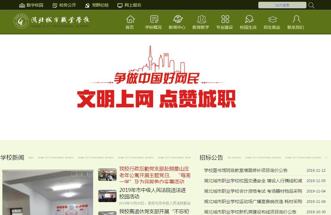 湖北城市职业学校是 2003 年由六所分属不同行业和部门的职业学校整合而成的一所政府主办的综合性中等职业技术学校,是首批国家级重点、首批省示范中等职业学校、首批省现代学徒制试点学校,先后获得省级文明单位、省安全文明校园、省职业教育先进单位、全国国防教育特色学校等荣誉。2015年被教育部、财政部、人社部确定为国家中等职业教育改革发展示范学校。学校位于黄石市下陆区风景秀丽的蜂烈山下,环境幽雅、鸟语花香,是治学成才的理想园地。学校占地495亩,建筑面积10余万平方米,图书馆藏书16余万册,建有国家计算机应用及软件专业实训基地,省服装设计与工艺实训基地,省汽车运用与维修实训基地,市服装设计与工艺、数控技术应用示范性实训基地。学校教学和生活设施优良,现有多媒体教室98个、各类专业实训室68个,校内实习工厂1个,校内实习实训基地6个,稳定的校外实训基地46个。建有省级放心食堂、市级文明宿舍,标准化篮球场、网球场、羽毛球场和田径运动场,为方便学生的学习和生活提供了优越的条件。学校拥有一支理论水平高、实践教学经验丰富的“双师型”教学团队。现有教职工282人,其中,高、中级职称教师200余人,研究生学历20余人,教学名师及学科(学术)带头人14人,“双师型”教师占专业课教师比例达90%以上。学校设有机电工程部、电子信息部、服装艺术部、经贸服务部、医药卫生部共5个专业部,开设了服装设计与工艺、会计电算化、电子商务、计算机平面设计、电子技术应用、模具制造技术、数控技术应用、护理、药剂、康复技术等17个专业,其中服装设计与工艺、电子技术应用、会计电算化、模具制造技术为国家示范项目建设专业,服装设计与工艺、电子技术应用、会计电算化为湖北省特色专业。在市委、市政府的正确领导下,在省、市教育主管部门指导下,学校加快发展现代职业教育,着力加强内涵建设,深化教育教学改革,狠抓师资队伍建设,强化校企合作,提升人才培养质量,不断提升办学实力,向建设特色优质中职学校的目标阔步前进!