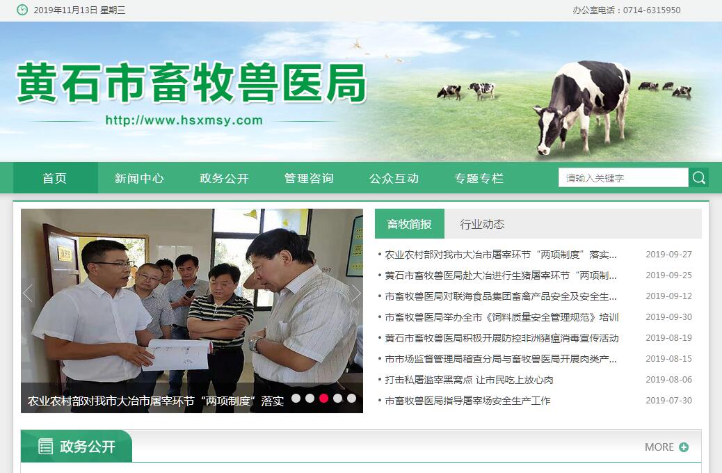 黄石市畜牧兽医局主要职责: (一)贯彻执行国家发展畜牧业的方针、政策,贯彻落实畜牧兽医法律法规及相关政策,参与制定我市畜牧业发展的政策性文件;(二)负责制定全市畜牧业中长期发展规划及年度计划;(三)负责指导全市畜牧业规模化养殖、标准化生产和产业化经营,引导畜牧产业结构的调整、畜牧业资源的有效配置和产品品质的改善;(四)负责地方畜禽遗传资源的保护利用和外引良种的管理,组织开展畜禽新品种繁育和生产新技术的推广;(五)负责饲草资源开发及草地建设、保护和监理工作;指导生鲜乳收购站布局规划、建设和监督管理;(六)负责畜产品质量安全监督管理工作,组织开展畜产品质量安全认证和监督管理,指导畜牧生产环境保护与治理;(七)负责全市动物防疫、检疫、兽医医政、兽药药政及畜牧兽医器械管理工作;(八)负责动物疫病监测及预警预报工作;(九)负责兽药、饲料及畜产品质量安全监督抽检工作;(十)负责动物卫生监督执法管理工作;(十一)负责畜牧兽医体系建设和管理工作,承担全市畜牧兽医人才开发工作;(十二)组织畜牧业经济发展和信息管理工作,负责全市畜牧兽医财政投资及基本建设项目的申报和管理;(十三)承担市防治重大动物疫病指挥部日常工作;(十四)负责农业血防工作;(十五)负责畜禽定点屠宰监督管理;(十六)承担上级交办的其他事项。