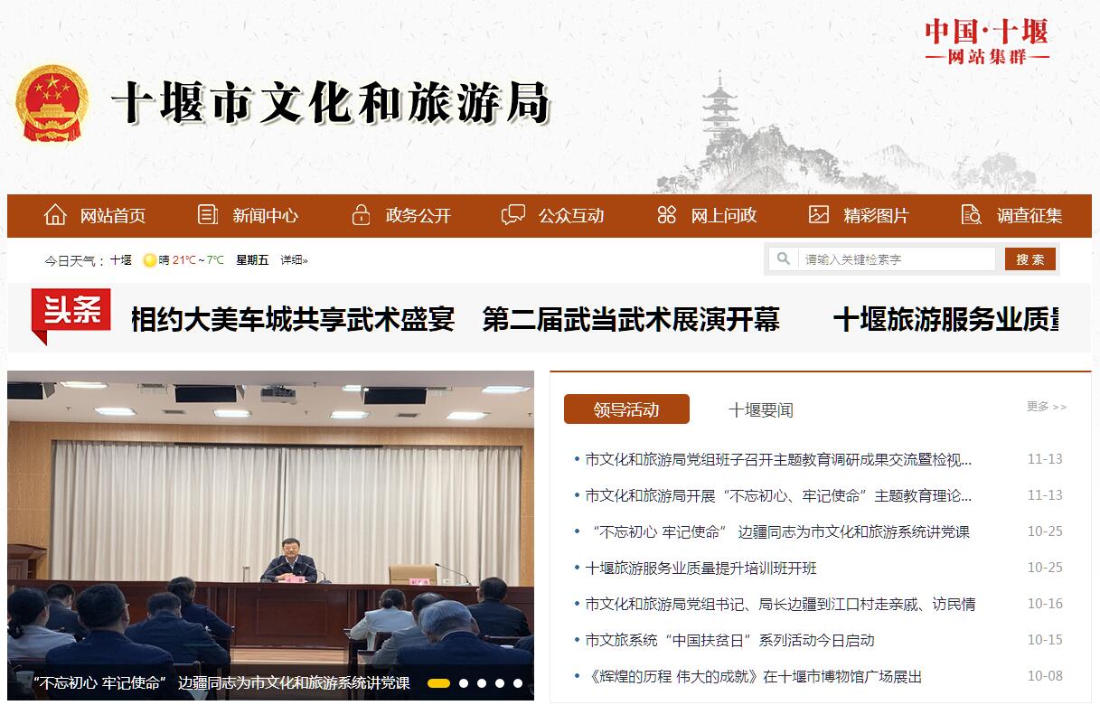 | 网站简介: 十堰市文化和旅游局是十堰市机构改革组建的新部门,为十堰市人民政府工作部门。按照《十堰市机构改革方案》,将市文化体育新闻出版广电局的职责和市旅游发展委员会的职责进行整合,新组建成立市文化和旅游局,作为市政府工作部门。市文化和旅游局对外加挂市广播电视局、市体育局牌子。不再保留市文化体育新闻出版广电局 (市版权局)、市旅游发展委员会。 |