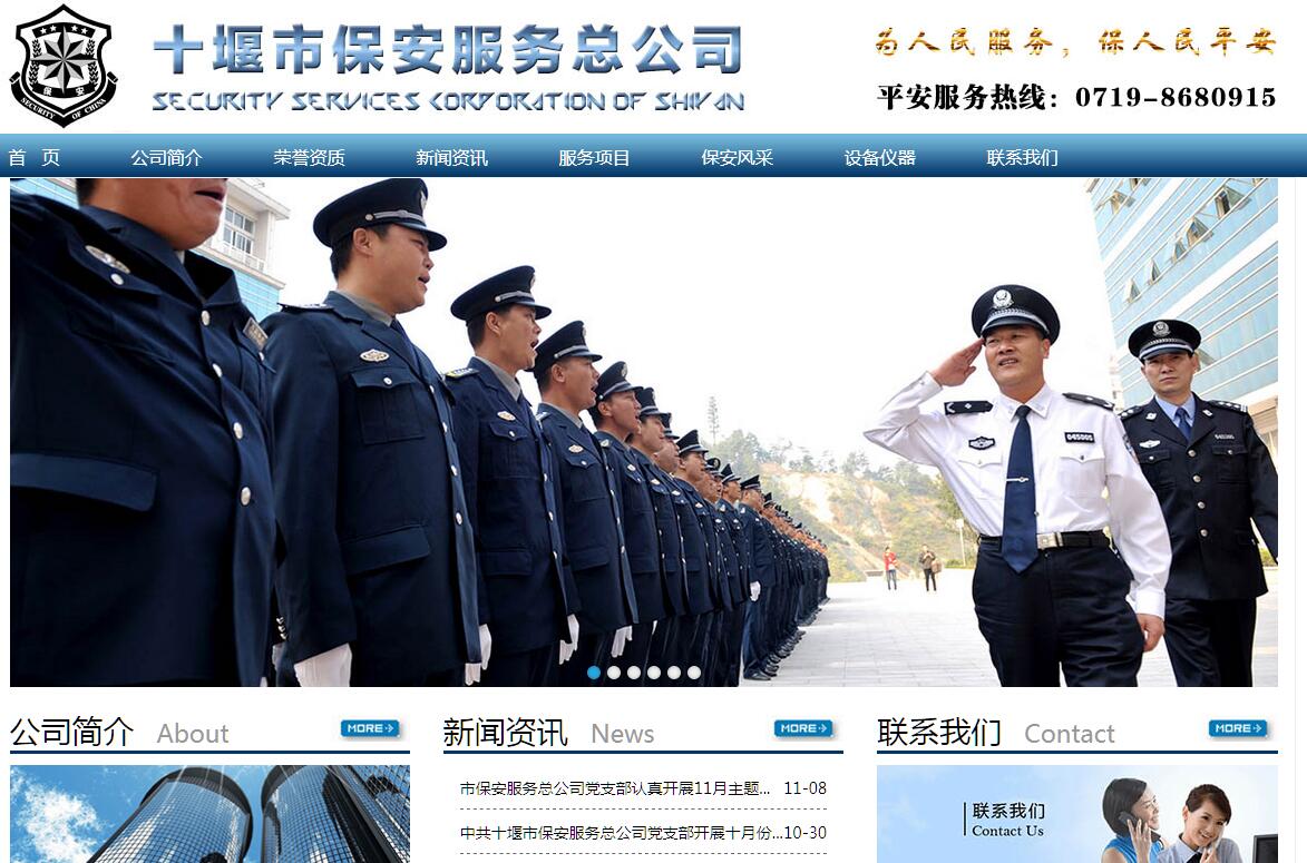 十堰市保安服务总公司始建于1989年7月18日。是经市公安机关批准市政府同意省公安厅审批在市工商局注册的一家国有企业。公司为客户单位提供门卫、巡逻、守护、安全检查以及安全技术防范,大型集会安保等服务。公司地址十堰市朝阳中路27号,注册资金110万元,固定资产321万元(原值),其中办公房屋209余万元,车辆8辆,划拨土地16.98亩。公司实行总经理负责制,下设办公室、财务室、市场开发部、督察部。下辖张湾分公司、茅箭分公司、白浪分公司。二十多年来,先后被团市委命名为“青年文明号”;被湖北省军区授予“学雷锋先进单位”;连续多年被省公安厅授予“保安工作先进单位”和“文明优质保安公司”;先后有王世相、刘永祥、曾立钱被授予全国优秀保安员和湖北省“五一劳动奖章”。二十多年来,十堰保安在公安机关的指导下,在社会各界的关心支持下,坚持以“社会效益经济效益齐抓并举”为指导方针,坚持以“客户至上,信誉第一,文明执勤,优质服务”为基本原则,坚持以“建设一流队伍,树立一流形象”为企业目标,按照“一元为主,多元发展”的工作思路,历尽二十多年的风霜雪雨,敢于拼搏、勇于进取、同心协力、艰苦创业,使保安事业从无到有,从小到大,一步一个脚印,一年一台阶。现发展成为具有一定规模在全省乃至全国都具有影响力的大型保安服务企业。我公司现有保安从业人员一千余人,人防客户单位70余户,守护目标遍布百里车城。公司实行总经理负责制,并形成党团组织积极配合,职能部门相互协调的管理运行机制。机构设置本着“精简、高效、务实、开拓”的原则。公司注重抓管理促效益、练内功强素质、树形象创品牌,以社会责任为己任,充分发挥保安服务的积极作用,由于公司管理规范,受到了市委政府各级领导的高度称赞,被誉为是一支“召之即来,来之能战,战则能胜”的铁血之旅,被团市委命名为“青年文明号”“青年突击队”和“打击车匪路霸突击队”;被湖北省军区授予“学雷锋先进单位”;连续十年被省公安厅授予“保安工作先进单位”和“文明优质保安公司”;连续多年被市公安局评为“先进单位”,公司以自己的实际行动,向世人证实了十堰保安是一支“客户单位满意,公安机关满意,市委政府满意,人民群众满意”的最可信赖的队伍。十堰保安公司历尽二十六年的春夏秋冬、艰苦奋斗,以“勇于攀高峰,敢为天下先”的气概,发展到今天的规模实属不易。目前保安业正面临改革发展的重大挑战和机遇,面对新的形势,十堰保安已牢固树立了忧患意识、大局意识、服务意识和改革意识。通过观念创新、推动服务创新、科技创新、制度创新、管理创新。充分发挥现有的资源优势、品牌优势,进一步解放思想、抢抓机遇、努力增强十堰保安公司的综合实力,不断开创十堰保安的新局面。为保一方平安,构建和谐十堰,做出新的更大的贡献。