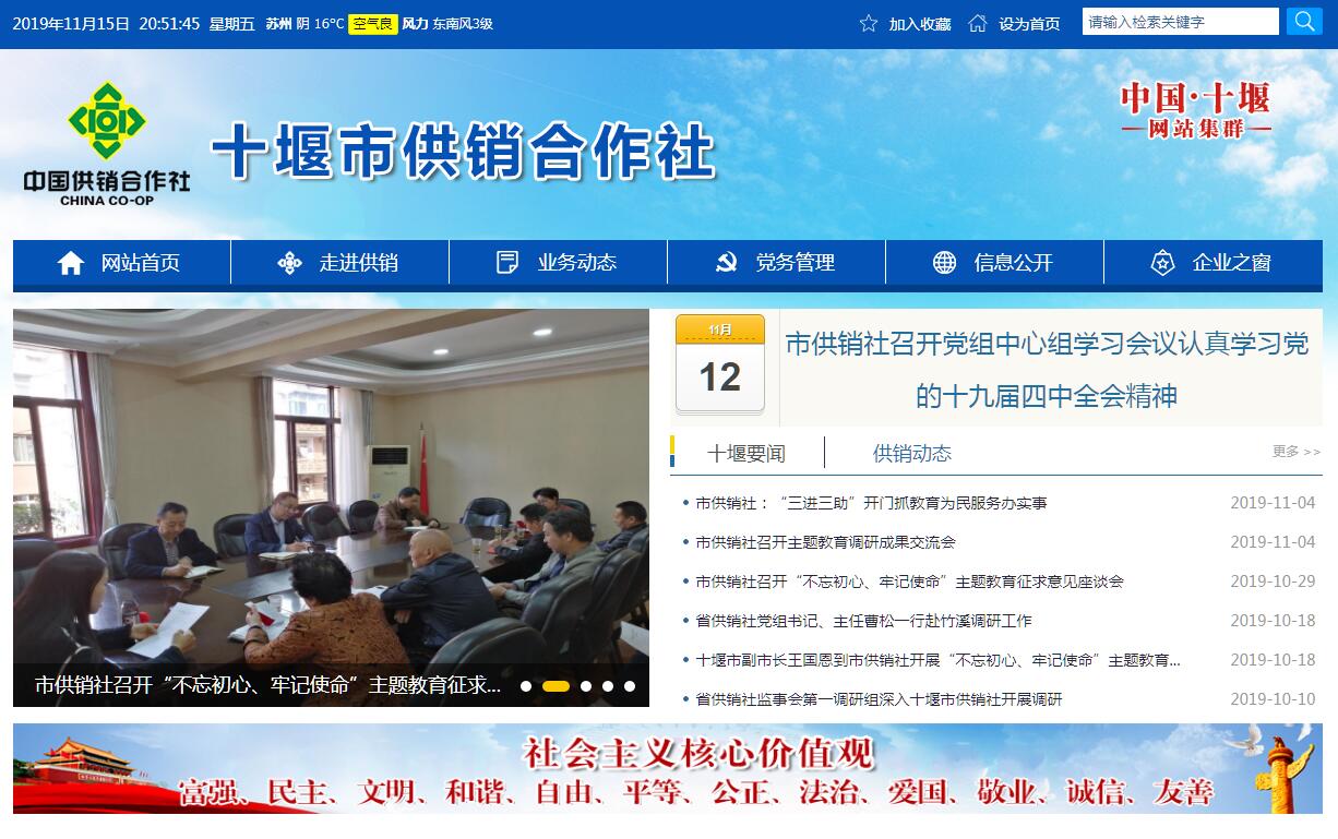 十堰市供销合作社联合社(以下简称市供销社),是全市供销合作社的联合组织(参照《公务员法》管理),由市人民政府领导。其主要职责是:(一)宣传贯彻执行党中央、国务院和省委、省政府以及市委、市政府有关农村经济工作及扶持发展农村合作经济组织的方针、政策和措施。(二)拟订全市供销社的发展战略和规划,指导全市供销社的改革和发展;推进农民专业合作社、农产品行业协会和村级综合服务社等农村新型合作经济组织发展。(三)参与农村市场体系建设,负责新农村现代流通网络体系建设,指导构建农村农业生产资料现代经营服务网络、农副产品市场购销网络、日用消费品经营服务网络、再生资源回收利用网络以及烟花爆竹安全经营网络。(四)参与推进农业产业化经营,指导和培育壮大相关龙头企业;指导全市供销社及农民专业合作经济组织参与农业产业化服务,为农民提供产前、产中、产后系列化服务。(五)加强对全市供销社及农民专业合作经济组织的业务指导与服务,协调其与政府部门和其他社会经济组织的关系;监督、检查全市供销社及农民专业合作经济组织贯彻执行党和国家有关方针、政策的情况。(六)指导全市供销社的经营管理和技改项目的管理。(七)按照市人民政府的授权,对重要农业生产资料、农副产品以及防汛救灾物资的收购、储备和供应进行组织、协调和管理。(八)行使本级社有资产出资人代表职能,加强社有资产经营管理,监督社有资产保值增值,并按出资额依法享有所有者的资产受益、重大决策和选择管理者的权利。(九)承办上级交办的其他事项。