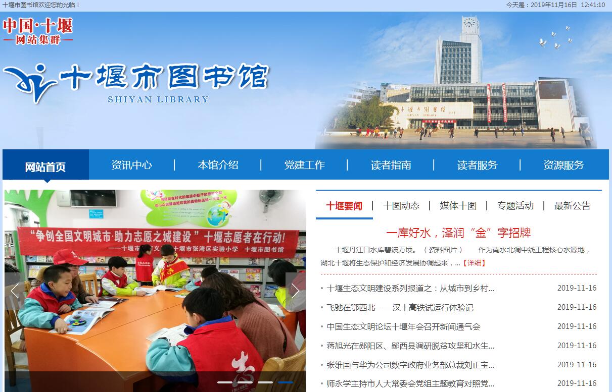 十堰市图书馆是市政府兴办的公共图书馆,位于十堰市公园路11号。成立于1979年2月,其前身是十堰市文化局图书室。1995年4月1日,原郧阳地区图书馆并入十堰市图书馆,核定事业编制70人,其中:馆长1名,党支部书记1名,副馆长2名,内设机构领导16名。其主要职责是:收集、保存、借阅图书资料,促进社会经济文化发展;提供多语种、多种载体的图书文献检索、阅览和外借服务;组织开展阅读指导与推广活动;通过举办报告会、讲座、展览等多种方式,开展延伸服务;通过多种方式,将文献外借服务向社区、村镇等延伸,定期开展巡回流动服务;提供参考咨询服务;关爱弱势群体,为少年儿童、农民工、残障人士提供针对性的服务;开展图书馆学理论和管理方法、技术的研究。十堰市图书馆建馆于1979年,馆舍面积1.03万平方米,现有工作人员62人,共有馆藏文献75万册(件)、可利用数字资源150TB,每年订购报刊1千多种,设有12个服务窗口,年接待读者70余万人次,借阅书刊70万册次,是十堰市最大的文献信息集聚地之一,是十堰市民自主学习、终身学习的学校。坚持“以人为本、读者至上”的服务理念,进一步丰富馆藏、优化服务、创新活动、拓展服务外延、推广数字阅读、探索“总分馆体系+建设”,有力推动了全民阅读的广泛开展,全面提升了内部管理和对外服务水平。多年来,市图书馆坚持“环境和谐、充满活力、全省知名、区域一流”的建设目标,大力倡导全民阅读,努力建设书香十堰,为建设文化强市和区域性中心城市做出了积极贡献,连续六次被命名为“国家一级图书馆”,两次获得全国文化工作先进集体荣誉,多次被中国图书馆学会、湖北省文化厅授予“读者满意图书馆”、“全国阅读活动先进单位”、“十佳图书馆”、“最美公共图书馆”称誉。