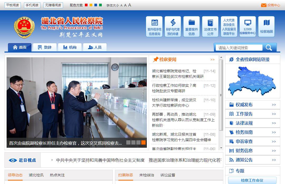 湖北省人民检察院对省人民代表大会及其常委委员会负责并报告工作,接受最高人民检察院的领导,领导全省各级人民检察院和专门人民检察院依法履行法律监督职能,保证国家法律的统一和正确实施。人民检察院是国家的法律监督机关,其主要职责是:1、对于叛国案、分裂国家案以及严重破坏国家政策、法律、政令统一实施的重大犯罪案件,行使检察权。2、对于贪污贿赂犯罪案件,国家工作人员的渎职犯罪案件,国家机关工作人员利用职权实施的非法拘禁、刑讯逼供、报复陷害、非法搜查的侵犯公民人身权利、民主权利的犯罪案件和其他重大犯罪案件,进行立案侦查。3、对于公安机关、国家安全机关、走私犯罪侦查机关等侦查机关和人民检察院自侦部门侦查的案件进行审查,对犯罪嫌疑人决定是否批准逮捕、起诉或者不起诉,并对侦查机关的立案、侦查活动是否合法实行监督。4、对于刑事案件提起公诉,支持公诉;对于人民法院的审判活动是否合法实行监督。5、对于人民法院的刑事判决、裁定是否正确实行监督,对确有错误的提起抗诉;对死刑复核实行监督;对羁押和办案期限实行监督;对看守所执法活动实行监督;对刑事判决、裁定执行活动实行监督;对强制医疗执行活动实行监督。6、对于民事诉讼实行法律监督。对于人民法院民事审判活动、执行活动和已经发生法律效力的裁判结果实行监督。7、对于行政诉讼实行法律监督。对于人民法院行政审判活动、执行活动和已经发生法律效力的裁判结果实行监督。8、依法保障公民对违法国家工作人员提出控告、申诉的权利,受理公民的控告、检举和申诉。