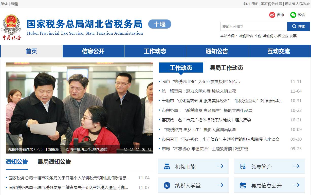 国家税务总局十堰市税务局的主要职责是:(一)负责贯彻执行党的路线、方针、政策,加强党的全面领导,履行全面从严治党责任,负责党的建设和思想政治建设工作。(二)负责贯彻执行税收、社会保险费和有关非税收入法律、法规、规章和规范性文件,研究制定具体实施办法。组织落实国家规定的税收优惠政策。(三)负责研究拟定本系统税收、社会保险费和有关非税收入中长期规划,参与拟定税收、社会保险费和有关非税收入预算目标并依法组织实施。负责本系统税收、社会保险费和有关非税收入的会统核算工作。组织开展收入分析预测。(四)负责开展税收经济分析和税收政策效应分析,为国家税务总局湖北省税务局和市委、市政府提供决策参考。(五)负责所辖区域内各项税收、社会保险费和有关非税收入征收管理。组织实施税(费)源监控和风险管理,加强大企业和自然人税收管理。(六)负责组织实施本系统税收、社会保险费和有关非税收入服务体系建设。组织开展纳税服务、税收宣传工作,保护纳税人、缴费人合法权益。承担涉及税收、社会保险费和有关非税收入的行政处罚、行政复议和行政诉讼事项。(七)负责所辖区域内国际税收和进出口税收管理工作,组织反避税调查和出口退税事项办理。(八)负责组织实施所辖区域内税务稽查和社会保险费、有关非税收入检查工作。(九)负责增值税专用发票、普通发票和其他各类发票管理。负责税收、社会保险费和有关非税收入票证管理。(十)负责组织实施本系统各项税收、社会保险费和有关非税收入征管信息化建设和数据治理工作。(十一)负责本系统内部控制机制建设工作,开展对本系统贯彻执行党中央、国务院重大决策及上级工作部署情况的督查督办,组织实施税收执法督察。(十二)负责本系统基层建设和干部队伍建设工作,加强领导班子和后备干部队伍建设,承担税务人才培养和干部教育培训工作。负责本系统绩效管理和干部考核工作。(十三)负责本系统机构、编制、经费和资产管理工作。(十四)完成国家税务总局湖北省税务局和市委、市政府交办的其他工作。