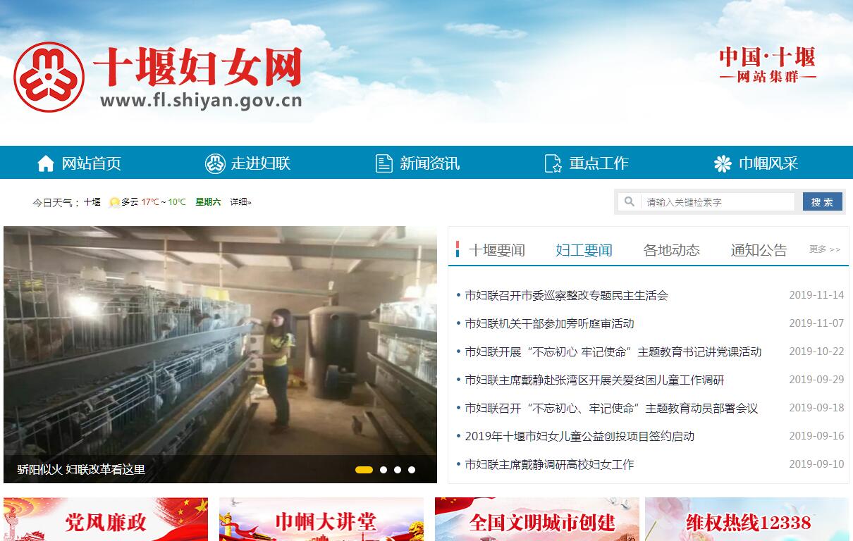 十堰市妇女联合会是在党领导下的社会群众团体,是党和政府联系妇女群众的桥梁和纽带。十堰市妇女联合会组织的基本职能是:代表和维护妇女利益,促进男女平等。其主要职责是:(一)贯彻落实党的基本理论、基本路线、基本方略,依据《中华全国妇女联合会章程》,团结、动员全市广大妇女投身改革开放和社会主义经济建设、政治建设、文化建设、社会建设和生态文明建设,在促进十堰经济发展和社会全面进步中发挥积极作用。(二)突出政治引领、思想引导,教育、引导妇女听党话跟党走,自觉践行社会主义核心价值观,发扬自尊、自信、自立、自强的精神,提高综合素质,实现全面发展。宣传和通报表扬优秀妇女典型,培养、推荐女性人才。(三)代表妇女参与国家和社会事务的民主决策、民主管理、民主监督,参与有关规划、规章和政策的制定。引导妇女积极参与公共事务管理和社会治理。推动保障妇女、儿童权益法律政策和发展规划的实施。(四)依法维护妇女儿童合法权益,倾听妇女意见,反映妇女诉求,会同有关单位和部门查处侵害妇女儿童合法权益的行为,为受侵害的妇女儿童提供帮助。(五)组织开展促进妇女发展、儿童健康成长和创新家庭工作等方面重点难点问题的调查研究,及时向市委、市政府提出政策建议。开展家庭和儿童工作,发挥妇联组织在家庭建设中的独特作用。打造妇联公益品牌,开展妇女儿童公益服务。(六)坚持党建带妇建,加强基层组织建设和对“妇女之家”建设的指导,扩大妇联组织有效覆盖。推动“网上妇联”建设,开展网上妇女工作。指导团体会员工作。负责引领、带动、联系服务妇女儿童和家庭的社会组织及其他女性组织。(七)负责市综治委维护妇女儿童权益暨“平安家庭”创建工作领导小组日常工作。(八)做好机关党建和党风廉政建设工作。(九)完成上级交办的其他工作。