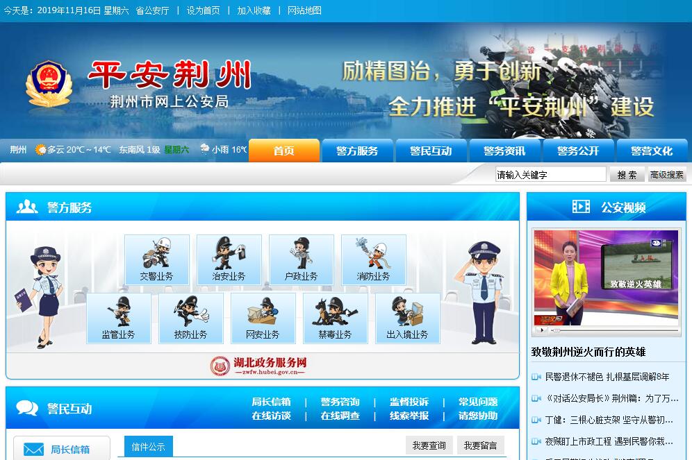 荆州市公安局主要职责:(一)贯彻执行党和国家关于公安工作的方针政策和法律法规,指导、检查、监督全市公安工作。(二)组织指导侦查工作,协调处置重大案件、治安事故和骚乱事件。(三)指导、监督全市公安机关依法查处危害社会治安秩序行为,依法管理户口、居民身份证、枪支弹药、危险物品和特种行业等工作。(四)组织指导出境、入境和外国人在市内居留、旅行的有关管理工作。(五)组织实施消防管理及监督,协助各级政府落实消防法规的各项措施。(六)指导、监督全市公安机关维护道路交通安全、交通秩序以及机动车辆、驾驶员管理工作。(七)指导、监督全市公安机关对国家机关、社会团体、企事业单位和重点建设工程的治安保卫工作以及群众性治安保卫组织的治安防范工作。(八)指导、监督全市公安机关对社会公共信息网络的安全监察工作。(九)指导、监督全市公安机关依法承担的执行刑罚和监督、考察工作;指导、监督全市看守所、拘留所、强制戒毒所、收容教育所等管理工作。(十)组织指导全市犯罪少年收容教养、收容教育的审批工作。(十一)指导、监督全市禁毒缉毒工作。(十二)组织实施全市公安科学技术工作;规划公安信息技术和刑事技术等建设,负责全市公安科学技术及社会公共安全生产的管理工作。(十三)研究制定并指导监督全市公安机关装备、被装配备和经费等警务保障标准、制度及其落实。(十四)领导全市消防、警卫部队,对武警部队执行公安任务及相关业务建设实施领导和指挥。(十五)制定全市公安机关人员培训、公安教育及公安宣传的方针和措施,检查监督落实情况;按规定权限管理机构、人员编制等工作以及管理和协管干部。(十六)制定全市公安队伍监督管理工作规章制度,按规定权限实施对干部的监督;组织、指导并实施警务督察工作;查处或督办重大违纪案件。(十七)承办上级交办的其他事项。