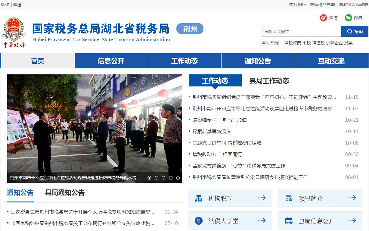 国家税务总局荆州市税务局的主要职责是:(一)负责贯彻执行党的路线、方针、政策,加强党的全面领导,履行全面从严治党责任,负责党的建设和思想政治建设工作。(二)负责贯彻执行税收、社会保险费和有关非税收入法律、法规、规章和规范性文件,研究制定具体实施办法。组织落实国家规定的税收优惠政策。(三)负责研究拟定本系统税收、社会保险费和有关非税收入中长期规划,参与拟定税收、社会保险费和有关非税收入预算目标并依法组织实施。负责本系统税收、社会保险费和有关非税收入的会统核算工作。组织开展收入分析预测。(四)负责开展税收经济分析和税收政策效应分析,为国家税务总局湖北省税务局和市委、市政府提供决策参考。(五)负责所辖区域内各项税收、社会保险费和有关非税收入征收管理。组织实施税(费)源监控和风险管理,加强大企业和自然人税收管理。(六)负责组织实施本系统税收、社会保险费和有关非税收入服务体系建设。组织开展纳税服务、税收宣传工作,保护纳税人、缴费人合法权益。承担涉及税收、社会保险费和有关非税收入的行政处罚听证、行政复议和行政诉讼事项。(七)负责所辖区域内国际税收和进出口税收管理工作,组织反避税调查和出口退税事项办理。(八)负责组织实施所辖区域内税务稽查和社会保险费、有关非税收入检查工作。(九)负责增值税专用发票、普通发票和其他各类发票管理。负责税收、社会保险费和有关非税收入票证管理。(十)负责组织实施本系统各项税收、社会保险费和有关非税收入征管信息化建设和数据治理工作。(十一)负责本系统内部控制机制建设工作,开展对本系统贯彻执行党中央、国务院重大决策及上级工作部署情况的督查督办,组织实施税收执法督察。(十二)负责本系统基层建设和干部队伍建设工作,加强领导班子和后备干部队伍建设,承担税务人才培养和干部教育培训工作。负责本系统绩效管理和干部考核工作。(十三)负责本系统机构、编制、经费和资产管理工作。(十四)完成国家税务总局湖北省税务局和市委、市政府交办的其他工作。