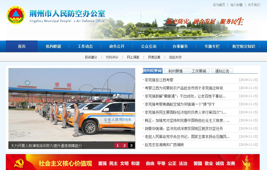 荆州市人民防空办公室主要职责:(一)贯彻落实人民防空有关的法律、法规和方针、政策;结合荆州实际,参与起草本级人民防空规范性文件,并监督执行;指导各县、市(区)人民防空工作。(二)负责编制和组织实施全市人民防空中长期发展规划和人防工程、通信警报建设规划;参与指导和监督城市地下空间开发建设中落实与人民防空有关的规定。(三)会同有关部门审批人民防空建设与城市建设相结合规划,负责结合民用建筑修建防空地下室事项的依法审批和综合管理,会同有关部门做好城市地下空间的规划、开发利用和审批工作;负责实施本级影响地震观测环境的新建、扩建、改建建设工程的审批等行政许可事项;(四)负责人防工程建设、通信警报建设、专业队伍建设中的行政执法工作;负责人民防空事项的行政复议和行政诉讼工作。(五)组织实施全市人民防空工程建设的监督与管理。负责防空地下室建设和城市地下空间开发利用兼顾人民防空要求的管理与监督检查,对人民防空工程建设实行计划、技术和质量监督管理,对城市重要经济目标落实人民防空要求的指导和监督,对涉及人民防空要求的重要工程布局和重大项目提出建议;指导和监督已建人防工程维护管理、平战结合开发利用以及安全管理工作。(六)组织全市人民防空信息化平台建设。组织与实施全市人民防空通信、警报建设与管理工作,依法组织全市防空防灾警报鸣放工作。(七)参与防灾救灾,承担全市人民防空组织指挥工作责任,制订城市防空袭预案并组织实施和监督检查;拟订人民防空演习(练)方案,经批准后组织实施。(八)组织开展全市人民防空的宣传教育,会同有关部门制订人民防空宣传教育计划并组织实施;推广应用人民防空科研成果。(九)管理市级人民防空经费、物资和国有资产。(十)承办上级交办的其他事项。