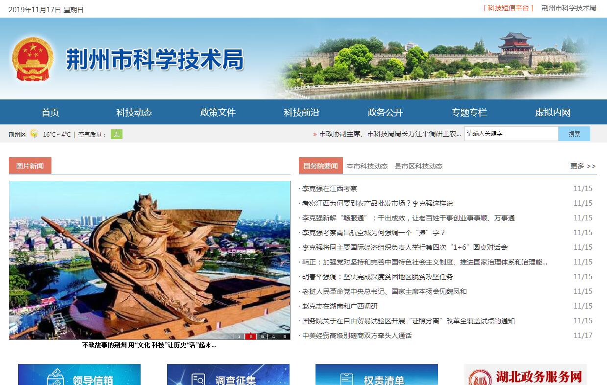 荆州市科学技术局主要职责:(一)贯彻执行党和国家以及省关于科技工作方针政策和法规;研究提出全市科技发展战略和科技促进经济与社会发展和重大问题;研究制定全市科技发展和科技促进经济与社会发展的政策规定;研究制定科普工作规划,组织建立健全科普工作网络。(二)组织编制全市科技发展中长期规划和年度计划;负责编制并组织实施市重点科技项目攻关计划;统筹管理各项科技专项发展计划,指导并协同有关部门推动农业和工业科技进步。(三)研究提出推进我市科技体制改革的政策措施;会同有关部门综合管理和研究制定促进民营科技事业发展的政策措施,指导全市民营科技工作;指导科研机构的发展,审核科研机构的组建和调整;协同有关部门制定科技人员相关政策和规定。(四)研究制定全市科技投入政策,确定投资方向和投资重点,优化科技资源配置;负责归口管理科技三项经费、科学事业费和科技外事费及有关费用的预决算。(五)组织提出全市高新技术发展战略与规划及相关的政策措施,负责高新技术企业、高新技术产品及高新技术成果的出资入股认定的审核与申报工作;归口管理全市星火技术密集区,参与管理高新技术开发区工作。(六)研究制定全市科技咨询、科技开发和科技成果商品化、产业化、国际化的政策措施,负责组织全市星火计划、火炬计划、攻关计划、成果推广计划、外事计划等科技计划的制定与实施。(七)归口管理全市对外科技合作与交流,研究制定全市对外科技交流合作计划并组织实施;负责全市对外科技交流、合作项目的审核工作。(八)指导、协调市直各部门和县市区科技管理工作,归口管理全市科技成果、科技奖励、科技保密工作,负责全市科技成果的登记、鉴定、奖励、推广等工作;指导全市技术市场和知识产权协调保护工作;促进科技咨询、招标、评估等社会中介组织的发展,推动科技服务体系的建立。 (九)归口管理全市软科学研究和科技信息工作;负责科技统计、科技新闻发布工作;会同有关部门做好科技档案的管理工作。(十)承担市国防科技动员办公室的日常工作;会同有关部门做好县市区党政领导科技进步目标责任制考核、组织工作。(十一)承办上级交办的其他事项。