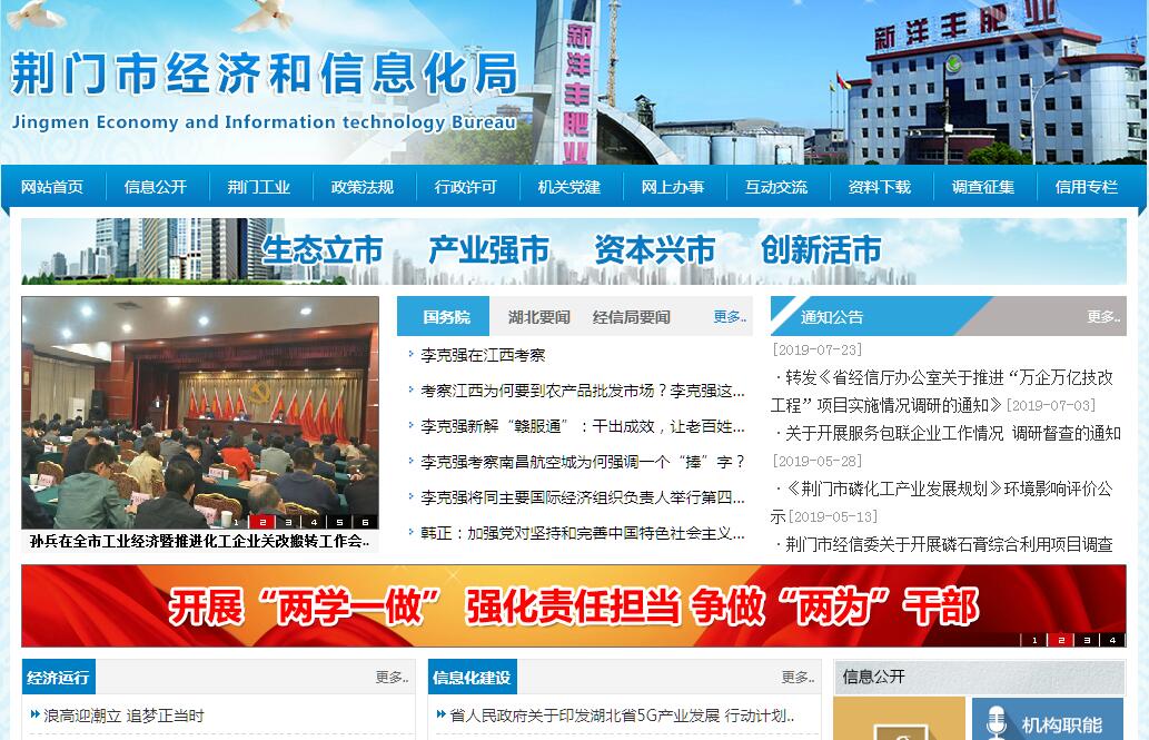 荆门市经济和信息化局主要职责:1、贯彻落实国家和省关于新型工业化和信息化的方针、政策和法规,拟订相关地方性法规、政府规章;提出新型工业化发展战略和政策建议,协调解决新型工业化进程中的重大问题,推进信息化和工业化融合。2、拟订并组织实施工业行业规划、计划和产业政策,提出优化产业布局、结构的政策建议,拟订行业技术规范和标准并组织实施,指导行业质量管理工作,负责企业负担监督工作。3、监测分析工业经济运行态势,进行预测预警和信息引导,协调解决行业运行发展中的有关问题并提出政策建议;协调重要物资的紧急调度和参与紧急运输协调工作,协调日常经济运行中的突出和重大问题;负责工业应急管理、产业安全和国防动员有关工作。4、负责提出工业和信息化固定资产投资规模和方向的意见,按市政府规定权限审核、批准市规划内和年度计划内固定资产投资项目。5、承担振兴装备制造业组织协调的责任;依托国家、省、市重点工程建设协调有关重大专项的实施,推进重大技术装备国产化,指导引进重大技术装备的消化创新。6、主管电力行政工作;负责编制全市年度电力电量平衡计划并组织实施;履行《电力法》授予的电力监督检查权和行政执法权。7、提出企业技术进步政策的建议,组织推动企业技术改造、技术创新;推进产学研结合,促进相关科研成果产业化,推动软件服务和新兴产业发展。8、组织拟订县域经济发展规划和政策,指导县域培育发展特色产业和产业集群;监测分析县域经济发展动态,协调解决县域经济发展中的重大问题;负责县域经济目标考核工作。9、负责中小企业发展的宏观指导,会同有关部门拟订促进中小企业发展和非公有制经济发展的相关政策和措施,推进中小企业服务体系建设,协调解决有关重大问题;负责中小企业统计工作。10、拟订并组织实施工业能源节约和资源综合利用、清洁生产促进政策,参与拟订能源和资源综合利用、清洁生产促进规划,组织协调相关重大示范工程和新产品、新技术、新设备、新材料的推广应用。11、负责化工、建材、食品、轻工、纺织、信息、机械、煤炭、包装等工业行业管理和医药储备管理,指导相关行业加强安全生产管理;承担市履行《禁止化学武器公约》工作领导小组的日常工作。12、统筹推进信息化工作,拟订信息化发展战略、政策;负责信息化建设的统一规划、组织协调和监督管理;指导和促进信息技术在国民经济和社会各领域的推广应用;承担市信息化领导小组、市电子政务工作领导小组的日常工作。13、负责协调维护信息安全和网络与信息安全保障体系建设;指导监督政府部门、重点行业的重要信息系统与基础信息网络的安全保障工作;协调处理网络与信息安全的重大事件;承担市网络与信息安全协调小组的日常工作。14、拟订并组织实施信息资源开发利用和信息基础设施建设中长期规划和年度计划,参与制定相关的支持政策;协调推进通信、广播电视和计算机网络整合发展,跟踪推进信息基础设施重大项目建设;协调通信市场涉及社会公共利益的重大事宜。15、负责无线电和电子电器产品维修行业管理工作。16、为大企业提供“直通车”服务,承担市大企业“直通车”服务领导小组的日常工作。17、负责贯彻执行国家、省关于国防科技工业发展的法律、法规、政策;负责民用爆炸物品生产、销售的安全监督管理;监督管理民用爆炸物品生产、销售、进出口及相应储存;组织查处不具备安全生产条件的民用爆炸物品生产、经销单位,组织销毁处置生产、经销环节废旧和罚没的非法民用爆炸物品。18、承办上级交办的其他事项。