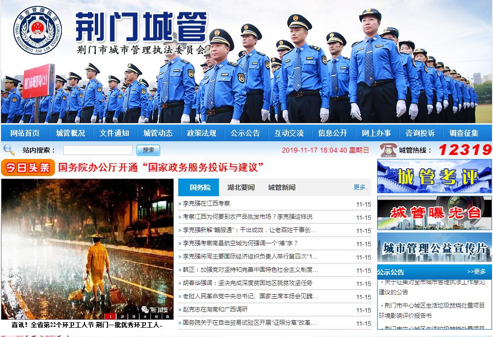 荆门市城市管理执法委员会于2019年3月挂牌成立。前身为荆门市城市管理局、荆门城市管理执法局(2010年8月成立)。市城管执法委下设市园林绿化服务中心、市市容环境卫生管理局、市城市管理执法督察支队、市社会管理和数字化城市管理信息中心、市中心城区违法建设治理督查处、市固体废物处置管理中心、市市容景观管理处、市城市公园管理处、市园林科研所、市市政服务中心。荆门市城管执法委是市政府工作部门,为正处级。主要负责贯彻落实党中央关于深入推进城市执法体制改革改进城市管理工作的方针政策和决策部署,落实省委、市委工作要求,在履行职责过程中坚持和加强党对城市管理执法工作的集中统一领导。主要职责为:贯彻执行国家、省、市有关城市管理和执法的方针、政策和法律、法规、规章,组织起草有关城市管理和执法方面的地方性法规、政府规章草案和规范性文件,组织编制全市城市管理和执法工作计划、标准和规范,并组织实施;组织编制并实施中心城区市容景观、环境卫生、园林绿化等专项规划和行业发展规划,并监督实施;负责统筹、协调、监督、考核城市管理工作,承担市城市治理工作领导小组办公室日常工作;负责中心城区大型户外广告设置监管,承担中心城区政府投资建设的楼宇建筑亮化设施维护管理,指导协调和检查验收全市市容环境美好示范路创建;负责中心城区建筑垃圾处置行业管理,以及建筑垃圾运输企业和环卫企业资质管理;监督实施中心城区生活垃圾、餐厨垃圾等废弃物无害化处理和资源化利用工作,负责指导全市生活垃圾处理和城市生活垃圾分类工作,承担市静脉产业园运行监督管理;承担中心城区3万平方米以上公园、广场的日常维护管理,组织实施中心城区义务植树,开展园林绿化项目科研及推广应用,保护管理城市规划区古树名木,负责社会绿化建设项目竣工验收,参与城市绿化建设项目设计方案的审定、项目监督管理和竣工验收;负责中心城区停车设施运行管理和互联网租赁自行车(共享单车)监督管理;负责中心城区跨区域城市管理综合执法指挥调度和重大案件查处,按照“成熟一项、承接一项”的原则,组织开展中心城区城市管理方面相对集中行政处罚权工作;协调督办中心城区建成区范围内违法建设治理工作;负责市级智慧城管平台的建设、维护、运行管理工作,指导监督全市智慧城管工作;负责中心城区门前三包管理工作业务指导和综合考核;负责全市城管执法队伍培训教育、督查考核等工作;承办市政府交办的其他事项;有关职责分工;市城市管理执法委员会负责的行政审批职责划入市行政审批局,监管职责仍由市城市管理执法委员会承担。近年来,荆门城市管理工作紧紧围绕“建设现代化精致城市”目标,以创建全国文明城市和“四个三重大生态工程”建设为抓手,大力实施城市精细化管理攻坚行动,扎实开展城市环境综合治理,城市形象和品位明显提升。2016年荆门市数字化城市管理项目荣获“中国人居环境奖范例奖”;2014年—2018年,荆门市连续五年荣获全省“‘楚天杯’城市管理优胜奖城市”,城区象山大道和两条高速公路出入口景观照明工程先后获得“2018年阿拉丁神灯奖湖北区域·年度优质工程奖”和“第十三届中照照明工程优秀设计奖”荣誉。