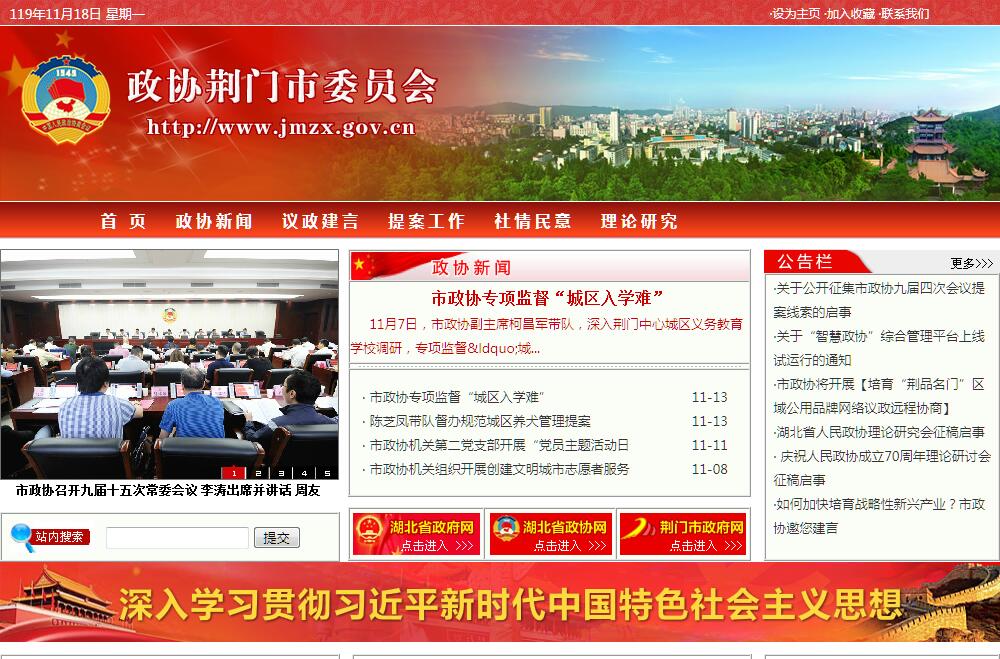 | 网站简介: 政协荆门市委员会,是中共荆门市委领导下的爱国统一战线组织,多党合作和政治协商机构。政协荆门市委员会接受政协全国委员会、政协湖北省委员会的指导。政协荆门市委员会指导政协沙洋县委员会、政协京山市委员会、政协钟祥市委员会、政协东宝区委员会、政协掇刀区委员会、漳河新区政协联络组、屈家岭管理区政协联络组。政协荆门市委员会全称: 中国人民政治协商会议湖北省荆门市委员会,由中国共产党、各民主党派、无党派人士、人民团体、各少数民族和各界的代表,以及特别邀请的人士组成。政协荆门市委员会设常务委员会主持会务。常务委员会由政协荆门市委员会主席、副主席、秘书长和常务委员组成。政协荆门市委员会主席主持常务委员会的工作,副主席和秘书长协助主席工作。常委会委员的候选人由参加政协荆门市委员会的各党派、团体、各民族和各界人士协商提名,经政协荆门市委员会全体会议选举产生。政协荆门市委员会的主席会议由主席、副主席和秘书长组成,在常务委员会闭会期间,处理常务委员会的重要日常工作。 |