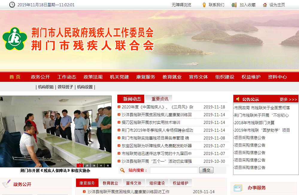 荆门市残疾人联合会于1989年经市政府批准成立,1998年机构改革定为正县级单位,2001年3月从民政局独立出来,为市财政全额拨款的社会团体,2018年5月残联换届为第六届。市残联机关内设3个科室,办公室、康复科、教就科。荆门市残疾人联合会下属市残疾人就业监督管理处、市残疾人辅助器具资源中心两个二级单位。市残疾人就业监督管理处(加挂市残疾人就业培训中心)为全额拨款单位。市残疾人辅助器具资源服务中心(加挂市残疾人康复中心)为自收自支单位。荆门市疾人联合会是中国残疾人联合会的地方组织,是将残疾人自身代表组织、社会福利团体和事业管理机构融为一体的人民团体。其主要职责是:(一)听取残疾人意见,反映残疾人需求,维护残疾人权益,为残疾人服务。(二)团结、教育残疾人,遵守法律,履行应尽义务,发扬乐观进取精神,自尊、自信、自强、自立,为社会主义建设贡献力量。(三)弘扬人道主义,宣传残疾人事业,沟通政府、社会与残疾人之间的联系,动员社会理解、尊重、关心、帮助残疾人。(四)开展残疾人康复、教育、劳动就业、文化、体育、科研、辅助器具供应、福利、社会服务、无障碍设施和残疾预防工作,创造良好的环境和条件,扶助残疾人平等参与社会生活。(五)协助政府研究、制订和实施残疾人事业的规划和计划,对有关业务领域进行指导和管理。(六)承担市政府残疾人工作委员会的日常工作,做好综合、组织、协调和服务工作。指导和管理各类残疾人社团组织。(七)开展残疾人事业的国际交流与合作。(八)承办市委、市人民政府交办的其它事项。