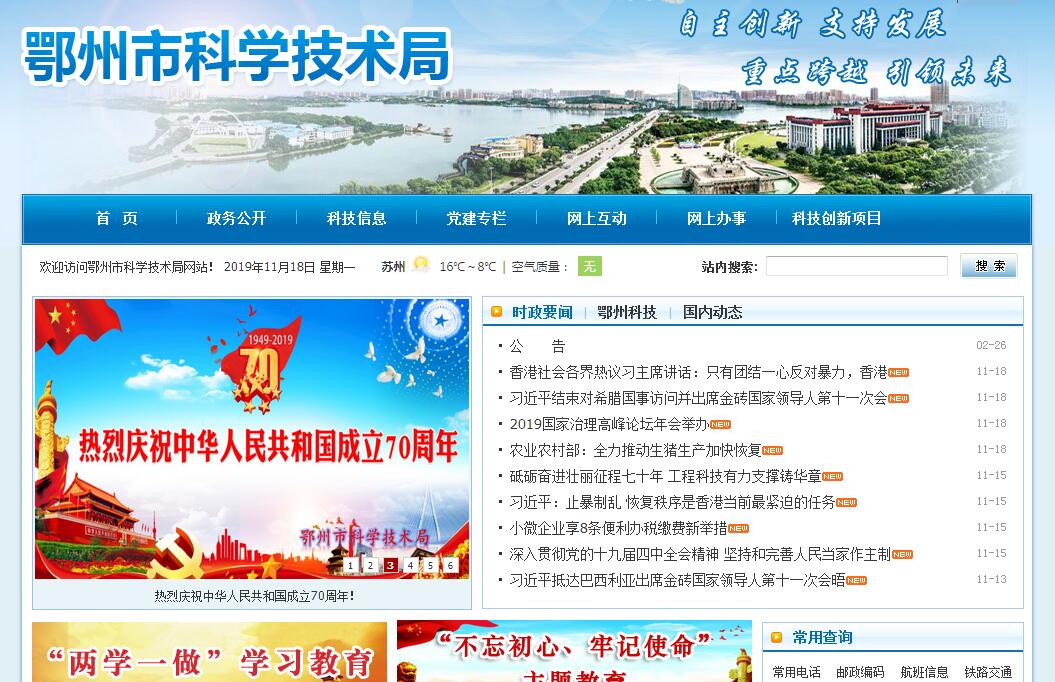 鄂州市科学技术局主要职责:(一)贯彻落实国家有关科技工作的法律法规和方针政策,研究拟订全市科技发展的规范性文件草案和科技促进经济社会发展的政策措施,并负责组织实施。(二)研究提出全市科技发展战略规划,确定全市科技发展布局和优先发展领域,组织编制全市中长期科技发展规划,推进全市科技创新体系和科技服务体系建设。(三)组织拟订全市科技体制改革的政策措施,制定和组织实施市级科技计划。(四)负责研究提出多渠道增加科技投入的政策措施,负责市级科学技术研究与开发经费、科技专项经费的使用和管理,会同有关部门提出科技资源优化配置的政策措施。(五)组织提出全市高新技术及产业发展战略规划及相关政策措施,负责组织高新技术企业及产品申报,会同有关部门组织开展技术先进型服务企业认定。(六)研究提出促进科技型中小企业发展的有关政策措施,组织实施科技型中小企业创新基金项目计划,推进科技创业投资体系建设。(七)组织制定科技促进农业和农村发展的政策措施,并负责组织实施,指导全市农业科技园区建设。(八)组织制定科技促进社会发展的政策措施,并负责组织实施,组织推进全市可持续发展实验区建设。(九)组织实施全市对外科技合作与交流,会同有关部门指导全市科技外事工作,组织、指导和实施全市产学研合作工作。(十)负责全市科技成果、科技奖励、科技保密、科技统计工作,指导知识产权、建设科技信息体系、生产力促进、科技对外交流、技术市场管理、技术需求等工作。(十一)组织制定全市科普工作规划并组织实施,研究提出合理配置科技人才资源的政策和措施。(十二)指导、协调市直部门和各地科技管理工作,组织推动科技兴市(区)工作,会同有关部门对各地党政领导科技目标责任制落实情况实施考核。(十三)承担市科技教育工作领导小组办公室、市科技奖励办公室、市国防科技动员办公室的日常工作。(十四)承办上级交办的其他事项。