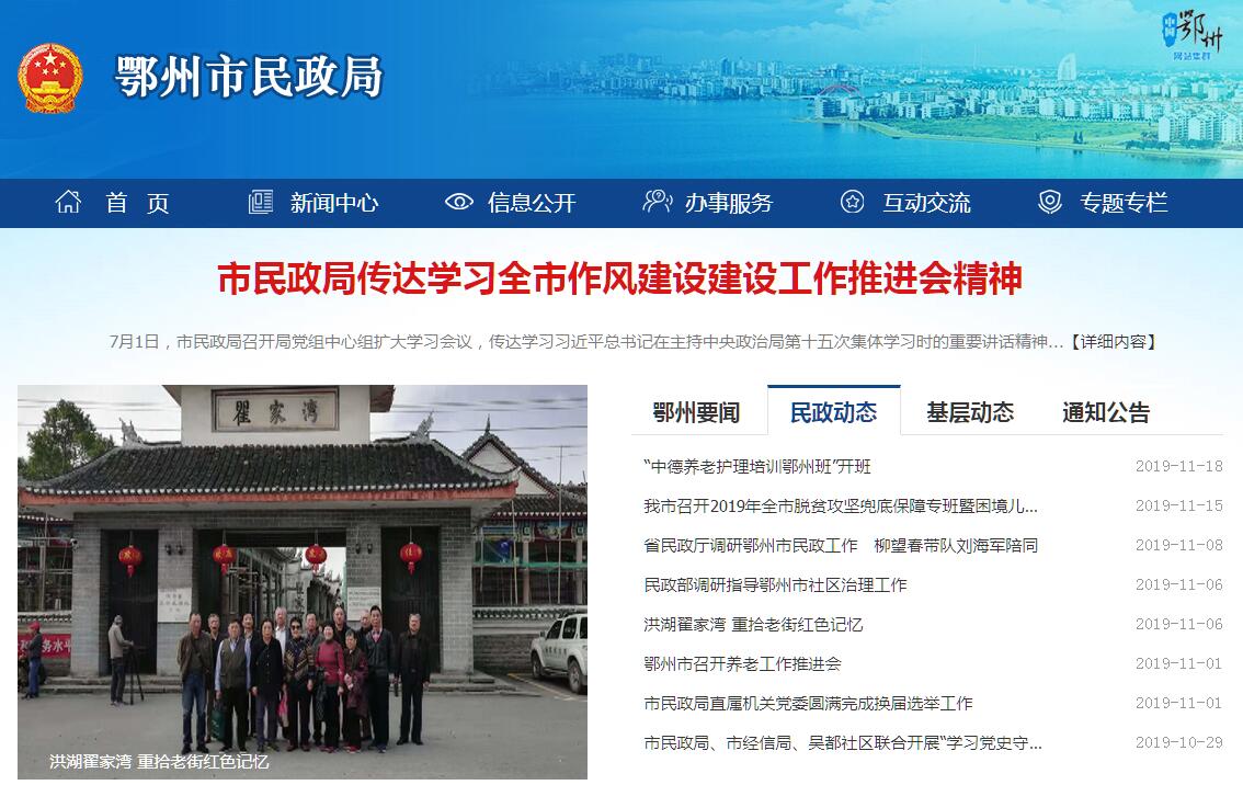 鄂州市民政局贯彻落实党中央关于民政工作的方针政策和决策部署,落实市委工作要求,在履行职责过程中坚持和加强党对民政工作的集中统一领导。其主要职责是:(一)贯彻执行民政事业发展法律、法规和政策、规划,拟订全市民政事业发展规划和相关政策并组织实施。(二)负责全市社会团体、基金会、社会服务机构等社会组织登记管理工作,依法对社会组织进行登记管理和执法监督。(三)拟订全市社会救助政策、标准,统筹社会救助体系建设,负责城乡居民最低生活保障、特困人员救助供养、临时救助、生活无着流浪乞讨人员救助工作。(四)拟订全市城乡基层群众自治建设和社区治理政策,指导城乡社区治理体系和治理能力建设,提出加强和改进城乡基层政权建设的建议,推动基层民主政治建设。(五)拟订行政区划、行政区域界线管理和地名管理政策、标准,组织、指导市内县级行政区划界线的勘定和管理工作,负责全市地名管理工作。(六)负责婚姻登记管理工作,拟订婚姻管理政策并组织实施,推进婚俗改革。(七)负责殡葬管理服务工作,拟订殡葬管理政策、服务规范并组织实施,推进殡葬改革。(八)统筹推进、督促指导、监督管理全市养老服务工作,拟订全市养老服务体系建设规划、政策、标准并组织实施,承担老年人福利和特殊困难老年人救助工作。(九)拟订全市残疾人权益保护政策,统筹推进残疾人福利制度建设和康复辅助器具产业发展。(十)拟订全市儿童福利、孤弃儿童保障、儿童收养、儿童救助保护政策、标准,健全农村留守儿童关爱服务体系和困境儿童保障制度。(十一)组织拟订全市促进慈善事业发展的政策,指导社会捐助工作,负责全市福利管理工作。(十二)拟订全市社会工作、志愿服务政策和标准,会同有关部门推进社会工作人才队伍建设和志愿者队伍建设。(十三)完成上级交办的其他任务。