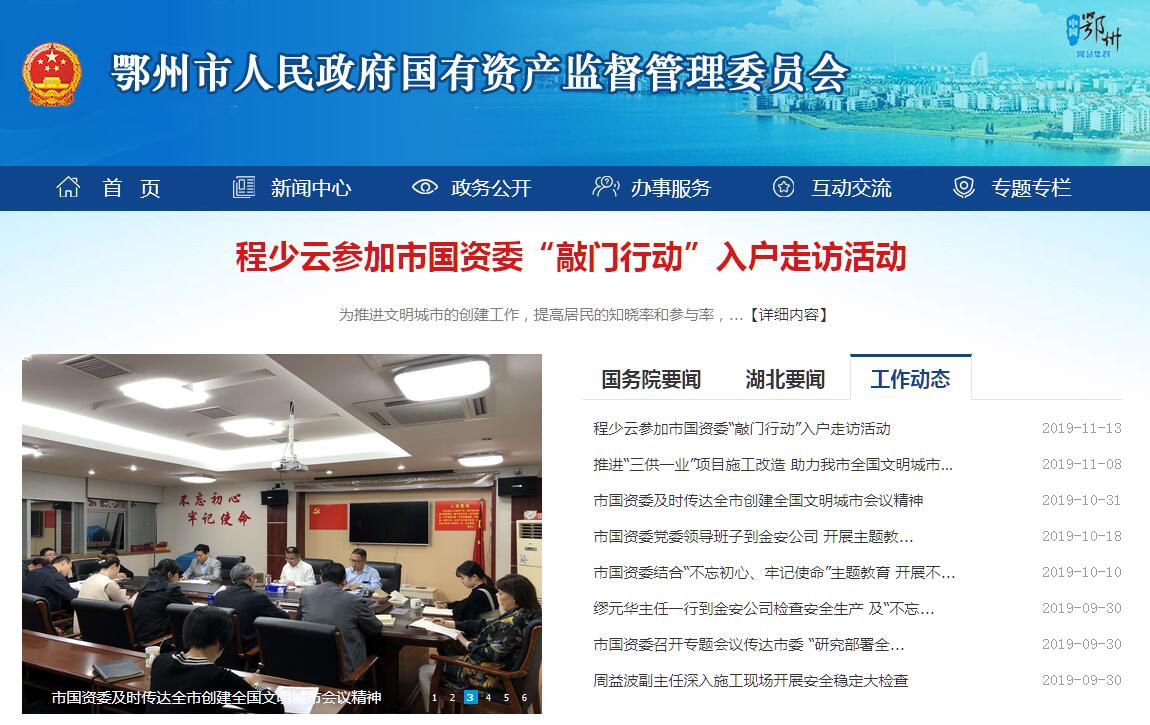 鄂州市国有资产监督管理委员会,为市政府工作部门。其主要职责是:(一)根据市政府授权,依照《中华人民共和国公司法》等法律和行政法规履行出资人职责,监管市级国有资产,加强市级国有资产的管理工作。(二)对所监管企业国有资产保值增值承担监管责任;建立和完善国有资产保值增值指标体系,制定所监管企业负责人经营业绩考核办法并组织年度和任期的业绩考核,通过统计、稽核对所监管企业国有资产保值增值情况进行监管;负责所监管企业工资分配管理工作,制定所监管企业负责人收入分配政策并组织实施。(三)指导推进全市国有企业改革和重组,推进全市国有企业的现代企业制度建设,完善公司治理结构,负责组织实施与央省企业的对接合作工作;承担市国有企业改革领导小组办公室的日常工作。(四)按照干部管理权限,通过法定程序对所监管企业负责人进行任免、考核并根据其经营业绩进行奖惩,建立符合社会主义市场经济体制和现代企业制度要求的选人、用人机制,完善经营者激励和约束机制。(五)按照有关规定,代表市政府向所监管企业派出监事会,负责监事会的日常管理工作。(六)加强对市级平台公司投融资监管。负责组织所监管企业上交国有资本收益工作,参与制定国有资本经营预算有关管理制度和办法,按照有关规定编制企业国有资本经营预决算草案报市财政局汇总,并负责执行。(七)按照出资人职责,负责督促检查所监管企业贯彻落实国家安全生产、信访维稳方针政策及有关法律法规、标准等工作。(八)负责企业国有资产基础管理,贯彻落实国有资产管理的法律法规,拟订地方性有关管理制度;指导企业法律顾问工作;依法对市以下国有资产管理工作进行指导和监督。(九)负责做好所监管企业党的建设、纪检监察、群团工作。(十)负责管理所监管企业领导班子建设,负责对市工贸国有资产经营公司的归口管理。(十一)为大企业提供“直通车”服务。(十二)承办上级交办的其他事项。