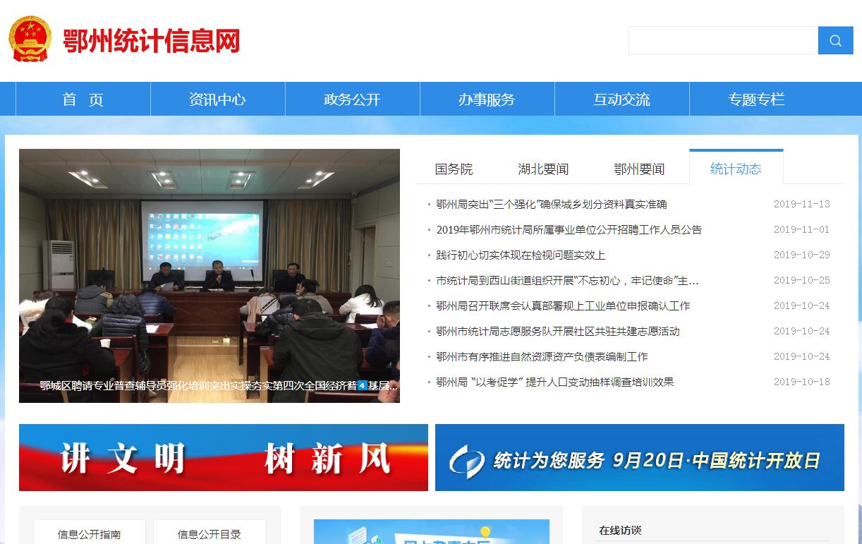 鄂州市统计局是鄂州市人民政府主管全市统计和国民经济核算的工作机构。其主要职责是:(一)拟定全市统计工作的规范性文件、统计改革和统计现代化建设规划,组织领导和监督检查各区、直管街、各部门的统计和国民经济核算工作,监督检查统计法律、法规的实施。(二)建立健全全市国民经济核算体系和统计指标体系;贯彻执行全国、全省统一的统计报表制度和国家、省统计标准;制定全市性统计调查计划;建立和完善全市经济、社会、科技统计调查制度;负责全市统计调查项目的管理,审查各区、直管街、各部门的统计调查计划和调查方案。(三)按照国家、省统一部署和市委、市政府的要求,组织全市重大市情市力普查;统一组织各区、直管街、各部门的社会经济调查,收集、整理全市的基本统计资料,进行国民经济核算;对国民经济、社会发展和科技进步情况进行统计分析、统计预测和统计监督,建立并不断完善宏观经济预警监测系统,向市委、市政府及其他有关部门提供信息和咨询建议。(四)统一核定、管理、公布全市性的基本统计资料,定期向社会发布全市国民经济和社会发展情况的统计信息。(五)建立健全和管理全市统计信息自动化系统和统计数据库体系,拟定各区、直管街、各部门统计数据库网络的基本标准和运行规则。(六)受国家、省统计局委托管理其设在鄂州城市社会经济调查队、农村社会经济调查队和企业调查队;协助地方管理各区统计局局长和副局长;直管街统计站站长;领导和管理市统计局直属事业单位。(七)承办市政府和省统计局交办的其他事项。