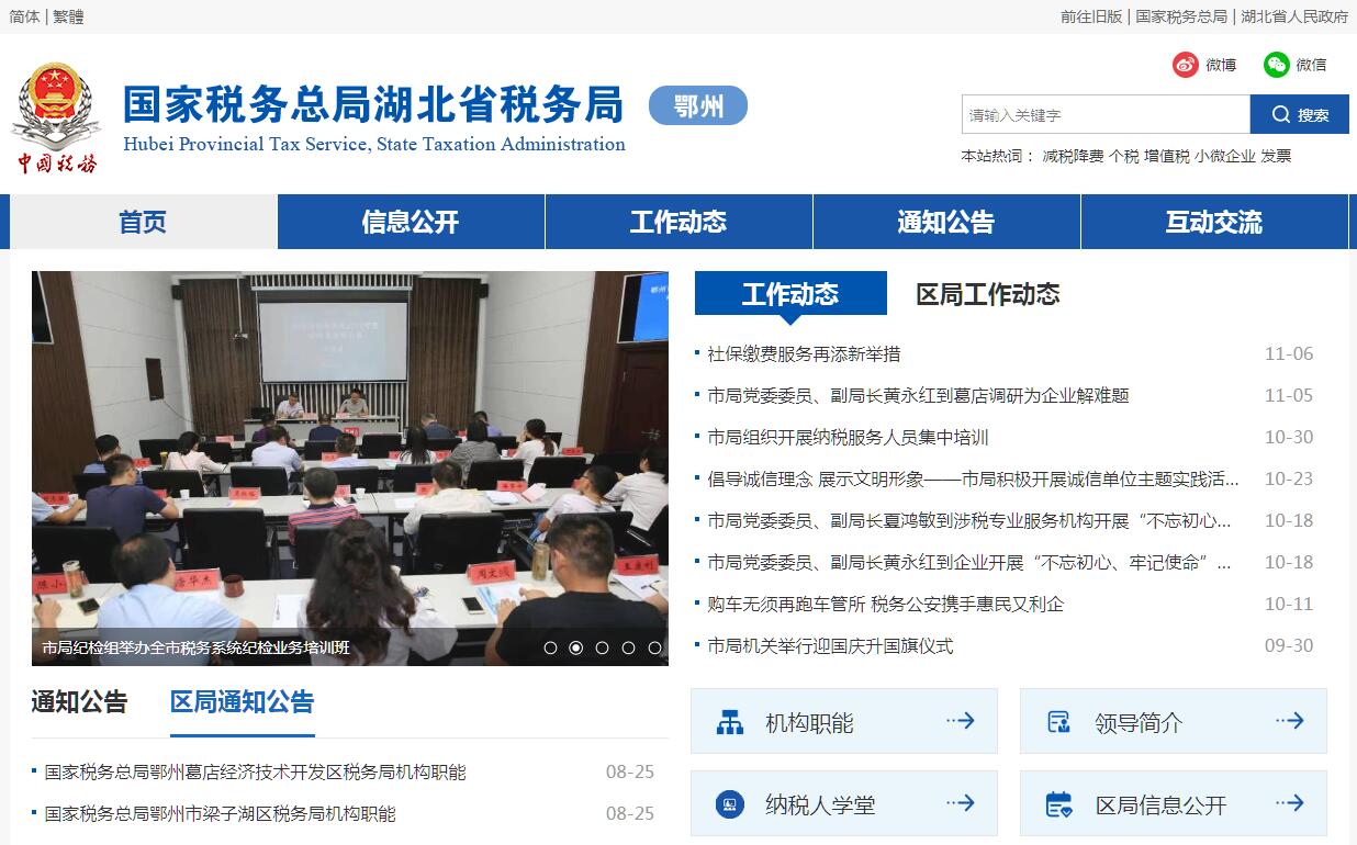 国家税务总局鄂州市税务局的主要职责是:(一)负责贯彻执行党的路线、方针、政策,加强党的全面领导,履行全面从严治党责任,负责党的建设和思想政治建设工作。(二)负责贯彻执行税收、社会保险费和有关非税收入法律、法规、规章和规范性文件,研究制定具体实施办法。组织落实国家规定的税收优惠政策。(三)负责研究拟订本系统税收、社会保险费和有关非税收入中长期规划,参与拟定税收、社会保险费和有关非税收入预算目标并依法组织实施。负责本系统税收、社会保险费和有关非税收入的会统核算工作。组织开展收入分析预测。(四)负责开展税收经济分析和税收政策效应分析,为国家税务总局湖北省税务局和市委、市政府提供决策参考。(五)负责所辖区域内各项税收、社会保险费和有关非税收入征收管理。组织实施税(费)源监控和风险管理,加强大企业和自然人税收管理。(六)负责组织实施本系统税收、社会保险费和有关非税收入服务体系建设。组织开展纳税服务、税收宣传工作,保护纳税人、缴费人合法权益。承担涉及税收、社会保险费和有关非税收入的行政处罚、行政复议和行政诉讼事项。(七)负责所辖区域内国际税收和进出口税收管理工作,组织反避税调查和出口退税事项办理。(八)负责组织实施所辖区域内税务稽查和社会保险费、有关非税收入检查工作。(九)负责增值税专用发票、普通发票和其他各类发票管理。负责税收、社会保险费和有关非税收入票证管理。(十)负责组织实施本系统各项税收、社会保险费和有关非税收入征管信息化建设和数据治理工作。(十一)负责本系统内部控制机制建设工作,开展对本系统贯彻执行党中央、国务院重大决策及上级工作部署情况的督查督办,组织实施税收执法督察。(十二)负责本系统基层建设和干部队伍建设工作,加强领导班子和后备干部队伍建设,承担税务人才培养和干部教育培训工作。负责本系统绩效管理和干部考核工作。(十三)负责本系统机构、编制、经费和资产管理工作。(十四)完成国家税务总局湖北省税务局和市委、市政府交办的其他工作。