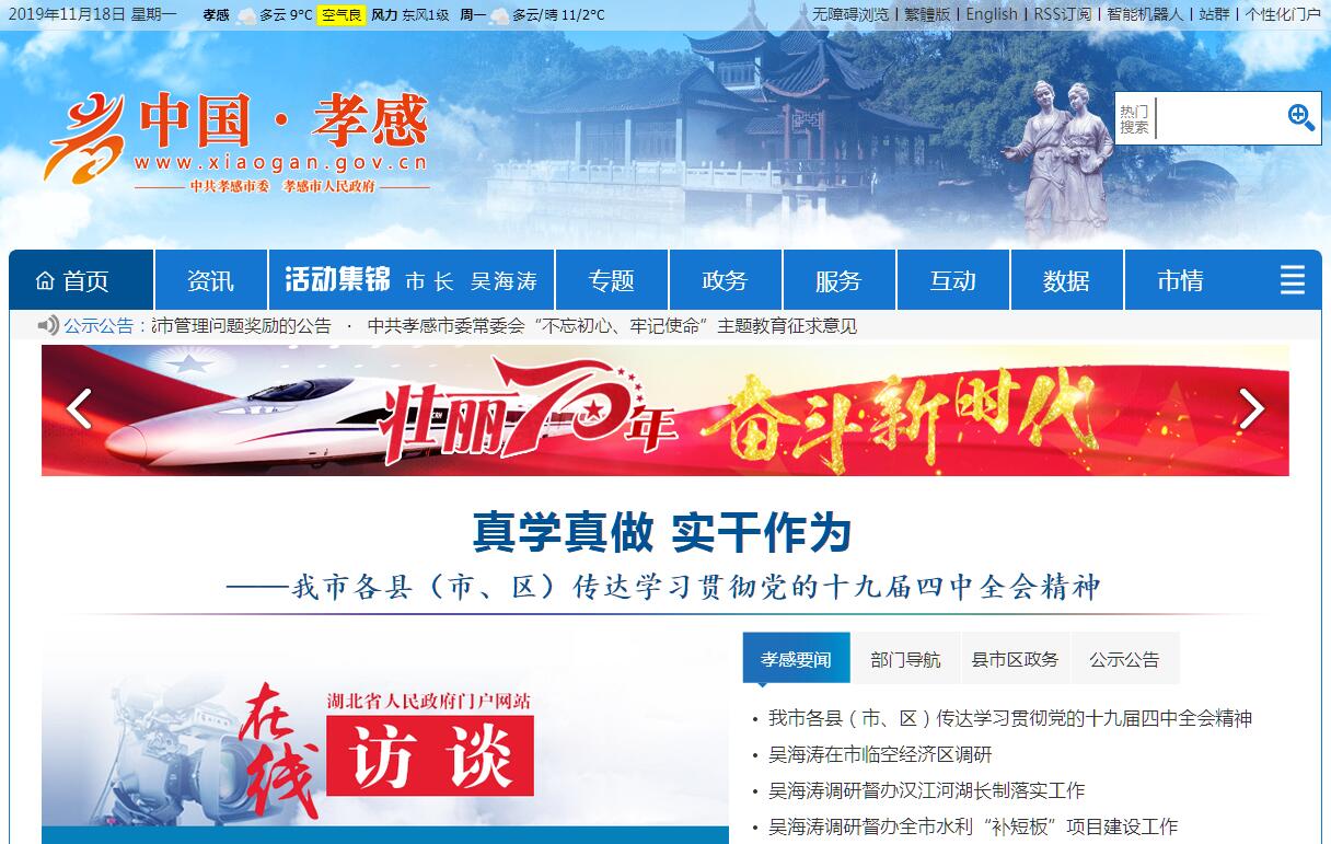 孝感,因东汉孝子董永卖身葬父、行孝感天动地而得名。孝感是湖北省区域性中心城市,是武汉城市圈和长江中游城市群重要成员,国家新型城镇化综合试点地区,也是华中地区最具潜力和竞争力的城市之一,综合竞争力在湖北省排名前六位。孝感地处于湖北省东北部,长江以北,汉江之东,与湖北省会城市武汉接壤,距离武汉市中心约60公里,距离武汉天河国际机场仅30公里,与武汉城市资源共享。现辖孝南区、云梦、大悟、孝昌四个区县、应城、安陆两个县级市,代管汉川市,以及一个国家级高新区和七个省级开发区(高新区)。全市面积8910平方公里,2016年全市总人口530万人。2016年,全年全市实现地区生产总值1576.69亿元,按可比价格计算,比上年增长7.9%。其中:第一产业增加值281.52亿元,增长4.0%;第二产业增加值756.40亿元,增长8.1%;第三产业增加值538.77亿元,增长9.5%。三次产业结构由上年的17.8:48.4:33.8调整为17.8:48.0:34.2。在第三产业中,批发和零售业、交通运输仓储和邮政业、住宿和餐饮业、金融业、房地产业、营利性服务业及非营利性服务业增加值分别增长7.5%、5.5%、9.7%、12.8%、7.3%、20.6%、6.8%。孝感地貌自南向北为平原、丘陵、山区,气候兼有南北之优,土地肥沃,是重要粮棉油生产基地。地质矿藏丰富,有“膏都”“盐海”“磷山”之称。