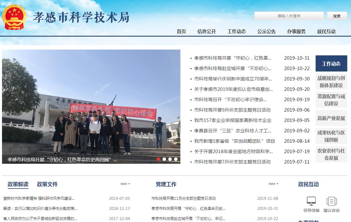 孝感市科学技术局主要职责:(一)拟定全市科技发展规范性文件、规划和措施并组织实施。(二)统筹推进全市创新体系建设和科技体制改革,会同有关部门健全技术创新激励机制。优化科研体系建设,指导科研机构改革发展,推动企业科技创新能力建设,承担推进科技军民融合发展相关工作,推进全市重大科技决策咨询制度建设。(三)编制市级科技计划并监督实施,会同有关部门提出优化配置科技资源措施建议,推动多元化科技投入体系建设。对接国家、省级重大科技专项,牵头组织重大技术攻关和成果应用示范。(四)拟定全市基础研究规划、措施并组织实施。拟定市级科技创新基地建设规划并监督实施。参与推进国家、省级科技基础设施建设,推动科研条件保障建设和科技资源开放共享。(五)拟定全市高新技术发展及产业化、科技促进农业农村和社会发展措施。组织开展重点领域技术发展需求分析,提出重大任务并监督实施。(六)统筹全市技术转移体系建设,拟定科技成果转移转化和促进产学研深入融合的相关措施并监督实施。指导科技服务业、技术市场和科技中介组织发展。(七)统筹全市区域科技创新体系建设,指导全市区域创新发展、科技资源合理布局和协同创新能力建设,推动科技园区建设。(八)负责全市科技监督评价体系建设和相关科技评估管理,组织科技评价机制改革,统筹科研诚信建设。组织实施全市创新调查和科技报告制度。指导全市科技保密工作。(九)负责引进国外智力工作,建立外国科学家、团队吸引集聚机制和外国专家联系服务机制。组织开展全市对外科技合作与科技人才交流。承担因公出国(境)培训项目的组织工作。(十)会同有关部门拟定全市科技人才队伍建设规划,建立健全科技人才评价和激励机制,组织实施科技人才计划,推动高端科技创新人才队伍建设。拟定全市科学普及和科学传播规划、措施。(十一)承担国家和省科学技术奖的组织申报工作。(十二)完成市委、市政府交办的其他任务。