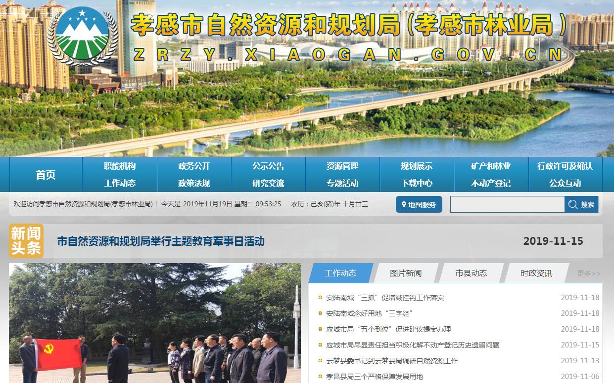 孝感市自然资源和规划局贯彻落实党中央关于自然资源和规划工作的方针政策和决策部署,落实省委和市委工作要求,在履行职责过程中坚持和加强党对自然资源和规划工作的集中统一领导。其主要职责是:(一)贯彻实施国家自然资源、林业等法律法规,拟订相关政策措施并组织实施。履行全民所有土地、矿产、森林、湿地、水等自然资源资产所有者职责和所有国土空间用途管制职责。(二)负责自然资源调查监测评价。贯彻执行国家、省自然资源调查监测评价的指标体系和统计标准。实施自然资源基础调查、专项调查和监测。负责自然资源调查监测评价成果的监督管理和信息发布。(三)负责自然资源统一确权登记工作。落实各类自然资源和不动产统一确权登记、权籍调查、不动产测绘、争议调处、成果应用的制度、标准、规范。建立健全全市自然资源和不动产登记信息管理基础平台。负责自然资源和不动产登记资料收集、整理、共享、汇交管理等。(四)负责自然资源资产有偿使用工作。落实全民所有自然资源资产统计制度和报告制度。负责全民所有自然资源资产核算。编制全民所有自然资源资产负债表,拟订考核标准并组织实施。指导实施全民所有自然资源资产划拨、出让、租赁、作价出资和土地储备政策措施,合理配置全民所有自然资源资产。负责自然资源资产价值评估管理,依法收缴相关资产收益。(五)负责自然资源的合理开发利用。拟订自然资源发展规划、开发利用标准并组织实施,建立政府公示自然资源价格体系,组织开展自然资源分等定级价格评估,开展自然资源利用评价考核,指导和落实节约集约利用。负责自然资源市场监管。组织研究自然资源管理涉及宏观调控、区域协调和城乡统筹的措施。(六)负责建立空间规划体系并监督实施。推进主体功能区战略和制度的落实,组织编制并监督实施国土空间规划和相关专项规划,统筹衔接其他种类专项规划。开展国土空间开发适宜性评价,建立国土空间规划实施监测、评估和预警体系。组织划定生态保护红线、永久基本农田、城镇开发边界等控制线,构建节约资源和保护环境的生产、生活、生态空间布局。落实国土空间用途管制制度,拟订并实施土地等自然资源年度利用计划。负责土地等国土空间用途转用工作。负责土地征收征用管理工作。(七)负责统筹国土空间生态修复。牵头组织编制国土空间生态修复规划并指导实施。负责国土空间综合整治、土地整理复垦、矿山地质环境恢复以及林地、湿地治理等工作。牵头建立和实施生态保护补偿制度,制定合理利用社会资金进行生态修复的措施,提出重大备选项目。(八)负责组织实施最严格的耕地保护制度。牵头拟定并实施耕地保护政策措施,负责耕地数量、质量、生态保护。组织实施耕地保护责任目标考核和永久基本农田特殊保护。落实耕地占补平衡制度,监督占用耕地补偿制度执行情况。(九)负责管理地质勘查相关工作。组织实施全市地质调查和矿产资源勘查。管理市级地质勘查项目。监督管理地下水过量开采及引发的地面沉降等地质问题。负责古生物化石的监督管理。(十)负责地质灾害预防和治理。按照综合防灾减灾规划相关要求,组织编制地质灾害防治规划和防护标准并指导实施。组织指导协调和监督地质灾害调查评价及隐患的普查、详查、排查。指导开展群测群防、专业监测和预报预警等工作,指导开展地质灾害工程治理工作。(十一)负责矿产资源管理工作。负责矿产资源储量、压覆矿产资源管理。负责矿业权管理。会同有关部门承担保护性开采的特定矿种、优势矿产的调控及相关管理工作。监督指导矿产资源合理利用和保护。(十二)负责林业资源管理工作。组织指导公益林和商品林的培育。指导开展全民义务植树、城乡绿化、林业有害生物防治、检疫和飞防飞播工作。组织实施林业重点生态保护修复工程。负责森林、湿地、草场、沙化土地、石漠化,以及陆生野生动物植物和各类自然保护地资源的监督和管理。负责林业生物种质资源、植物新品种保护。编制并监督执行森林采伐限额,开展天然林保护、退耕还林还草工作。拟订市级重点保护的陆生野生动物植物名录和自然保护地的规划。指导国有林场建设和林业产业发展及改革工作。(十三)负责空间规划管理工作。参与编制经济社会发展与城市建设中长期规划和年度计划。负责编制市域范围内的主体功能区规划、城镇体系规划、自然保护区规划、风景名胜区规划、历史文化区和历史文化建筑、文物古迹的规划管理。负责编制城市总体规划、土地利用总体规划、分区规划、控制性详细规划、重要地段修建性详细规划、重大建设项目修建性详细规划、城市设计及市政府其他指令性规划。负责编制中心城区范围内的镇(乡)及村庄规划。协调有关部门编制相关专项规划。参与重大建设项目的前期研究工作。(十四)负责指导和审核涉及国土空间开发利用的基础设施、公共服务设施等建设项目和生态保护等市级专项规划工作。负责城市规划建设用地范围内建设项目“一书两证一核实”的管理。对建设项目实行批后管理,依法组织放线、验线及竣工验收管理。负责发放乡村建设规划许可证。(十五)负责测绘地理信息管理工作。负责基础测绘和测绘行业管